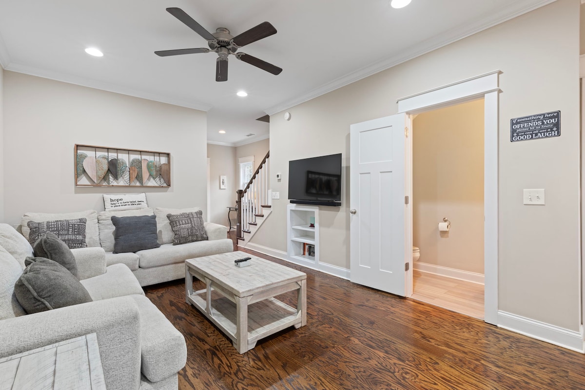 Newly renovated home with: -New Samsung appliances -Smart TV in each room -Fully stocked kitchen & bathrooms -Echo dot -Fenced in backyard -Patio chairs & string lights -1 car garage -Weber grill Located minutes from I-24 & I-840 to drive to the best places in middle TN: 🐶 Park/Greenway -1 min I-24 -3 min Downtown Murfreesboro -10 min MTSU -10 min Arrington Vineyards -25 min Nashville Superspeedway 🚘 -23 min Franklin -30 min Downtown Nashville 🎵, Nissan Stadium 🏈 , Bridgestone Arena 🏒 -35 min
