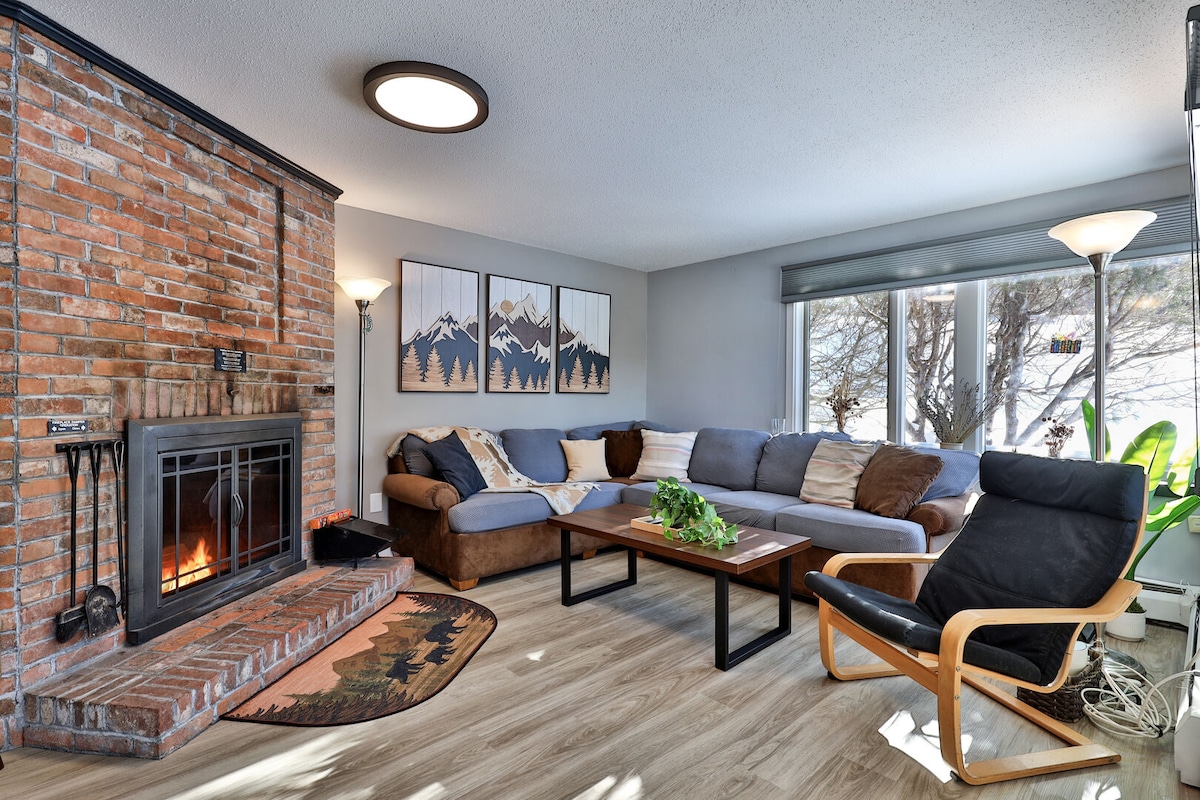 Nestled in central Killington, this newly-renovated 5-bedroom gem boasts unmatched slope views on all floors. Enjoy two opulent king suites—one with a deck, the other with panoramic windows. Three additional cozy bedrooms, a state-of-the-art kitchen, original Killington bar, and a game room await. Outside, relish a unique hot tub, Weber BBQ, and a fire pit in a spacious yard. Walk to the shuttle, restaurants, bars, and markets. Tesla charger on-site. Dive into unparalleled luxury!