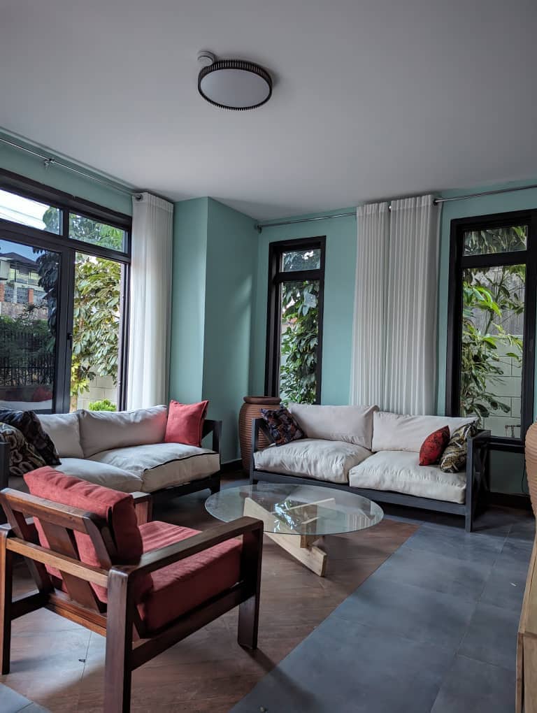 Welcome to Kona Gana, a newly constructed, modern apartment located in the heart of Kigali. A spacious 2 Bed 2 Bath duplex apartment perfect for couples, a group of friends, business travellers or a family with children. The apartment is located in the safe, central neighbourhood of Kacyiru, and designed to offer comfort and peace of mind to travellers — fit with modern appliances, high-speed internet, a washer and dryer, universal power outlets, and comfy mattresses for a good night’s rest.