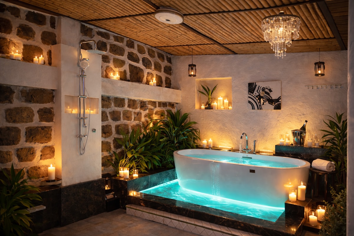Escape to a private lakeside resort —perfect for couples or two people seeking peace,privacy, and quality time together. Cook, relax, and enjoy nature in a fully equipped space designed just for you. Enjoy a jacuzzi, outdoor shower, fire pit, rooftop seating, and a dining area with stunning lake views. Note: Parking is 100m away, but fully secured with 24/7 guards and cameras. Need anything?We deliver food,drinks and essentials right to you—just send us your list. We can’t wait to welcome you!
