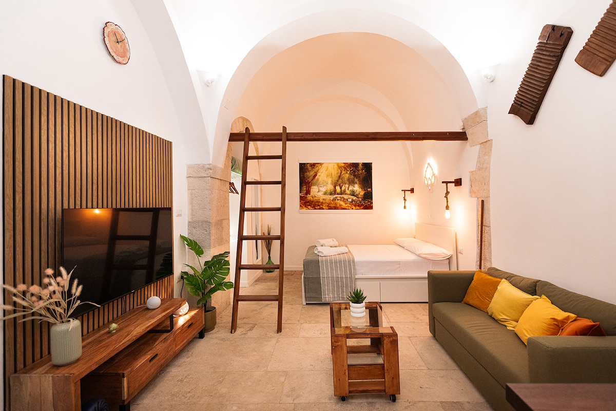 Built between the 1300 and 1400s, a stone loft overlooking the Adriatic Sea. This building was first used a cannon house and throughout the following years served as a warehouse, a coal pit and an atelier of a renowned local painter. Today our family is committed to reviving this building and its history, providing guests with a unique and comfortable stay in the heart of Puglia.