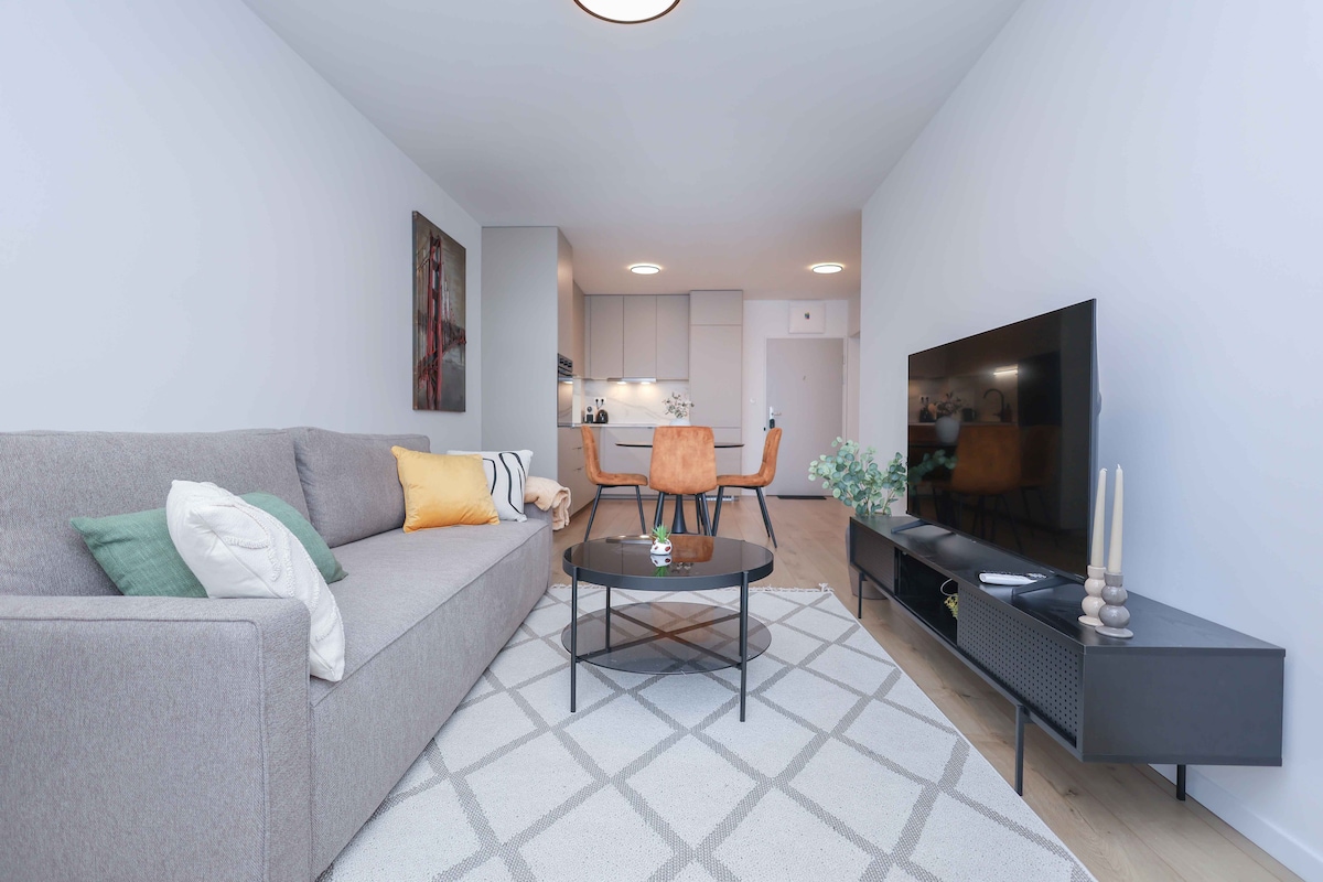 Brand new apartment in the newly built area of Bratislava and an easy walk to the city center. Within walking distance to new malls, Downtown, the Danube River, and the new business district in Bratislava. The apartment is spacious with all amenities a balcony and a fully fitted kitchen for short and long stays. The master bedroom has a king-size bed and the living room is provided with a sofa bed that fits 2 people. The building has a 24h security, central heating, and cooling.