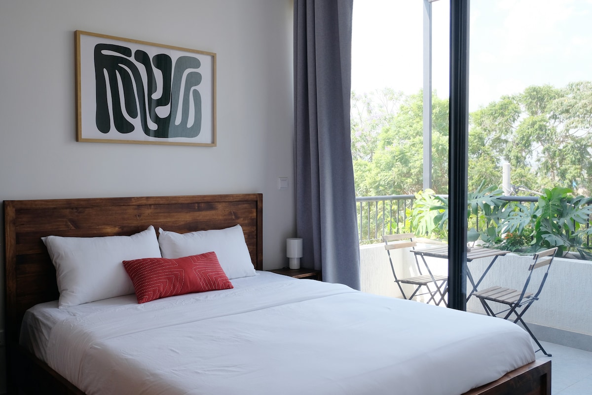 Welcome to Kona Tura, a newly constructed, modern apartment located in the heart of Kigali. A cozy 1 Bedroom 1 Bathroom apartment perfect for solo travellers or couples. The apartment is located in the safe, central neighbourhood of Kacyiru, and designed to offer comfort and peace of mind to travellers — fit with modern appliances, high-speed internet, a washer and dryer, universal power outlets, and comfy mattresses for a good night’s rest.