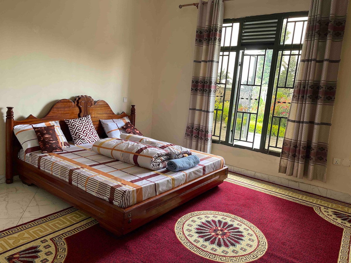 This is a comfortable modern house that is fully furnished, with an open plan living area and a well-equipped kitchen. It also offers two king-sized bedrooms and a futon with a private terrace and views of Kigali. It features a swimming pool and a modern gym. Utilities include fiber optic WIFI, TV, a laundry machine (washer and dryer), 24/7 security, and a private garage. No pets or smoking. Long-term stays are available and can be discussed.