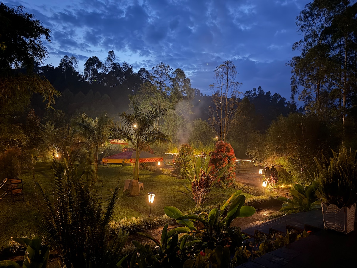 Our room offers a unique blend of rustic charm and modern comfort. You'll be surrounded by nature while enjoying amenities like our organic farm, garden, mountain view, on-site restaurant, women-led craft activities and more. Wake up to breathtaking views and fall asleep to the gentle sounds of nature. Enjoy the magical glow beside our crackling fire pit and stare at the big night sky. In addition, a healthy and delicious breakfast is included. it easy at this unique and tranquil getaway.