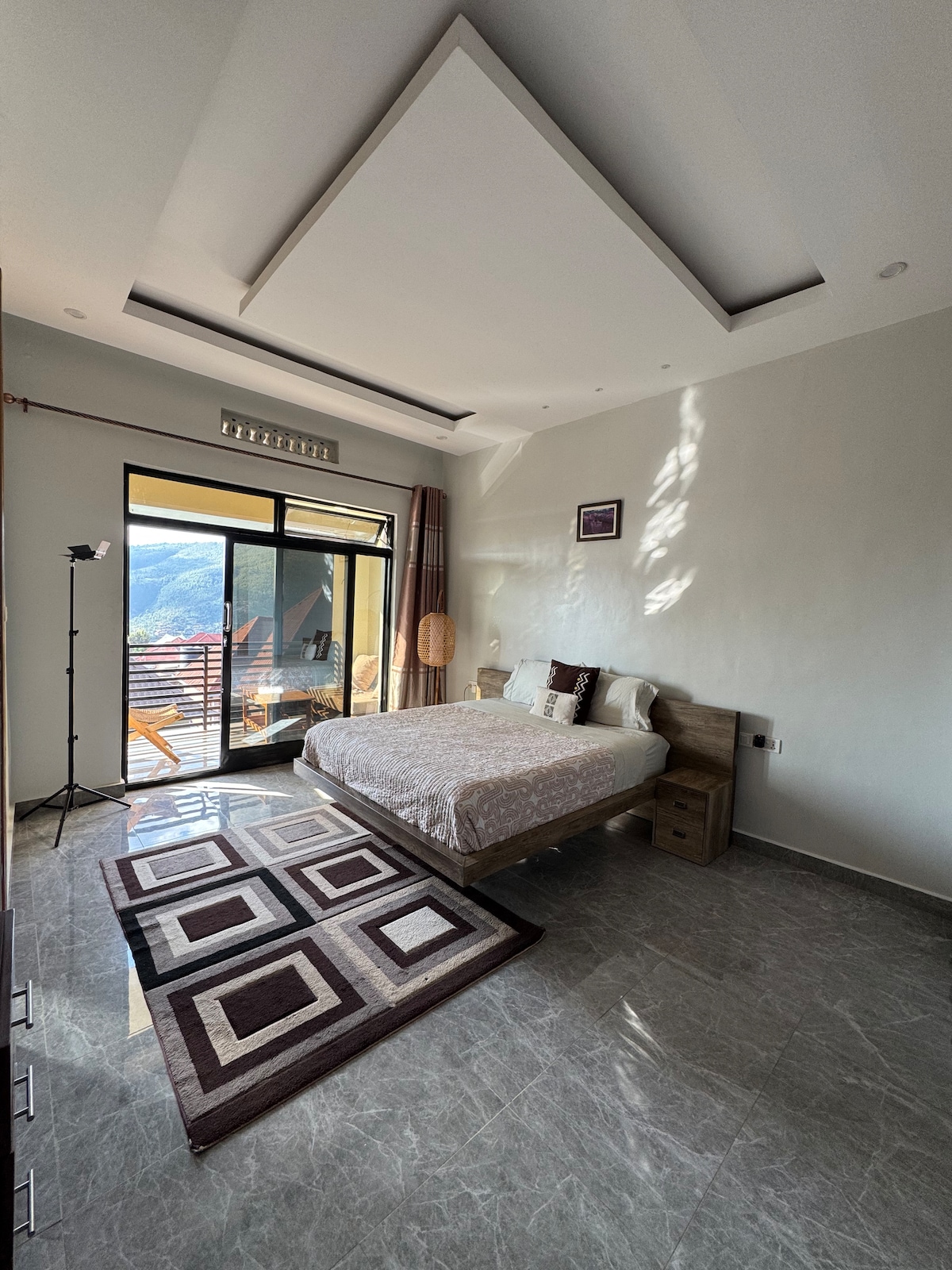 Experience Luxury at the Penthouse Studio, Jabo Suites Stay on the 5th floor modern penthouse studio featuring a private outdoor bathtub with stunning views of Kigali’s hills. Enjoy a chic living space with a queen bed, 55-inch TV, Netflix, high-speed Wi-Fi, & a fully equipped kitchenette. Relax by the residents-only pool & Gym, benefit from daily housekeeping, 24/7 security, free parking. Perfect for business or leisure, this serene retreat in Kibagabaga ensures comfort, convenience & privacy.