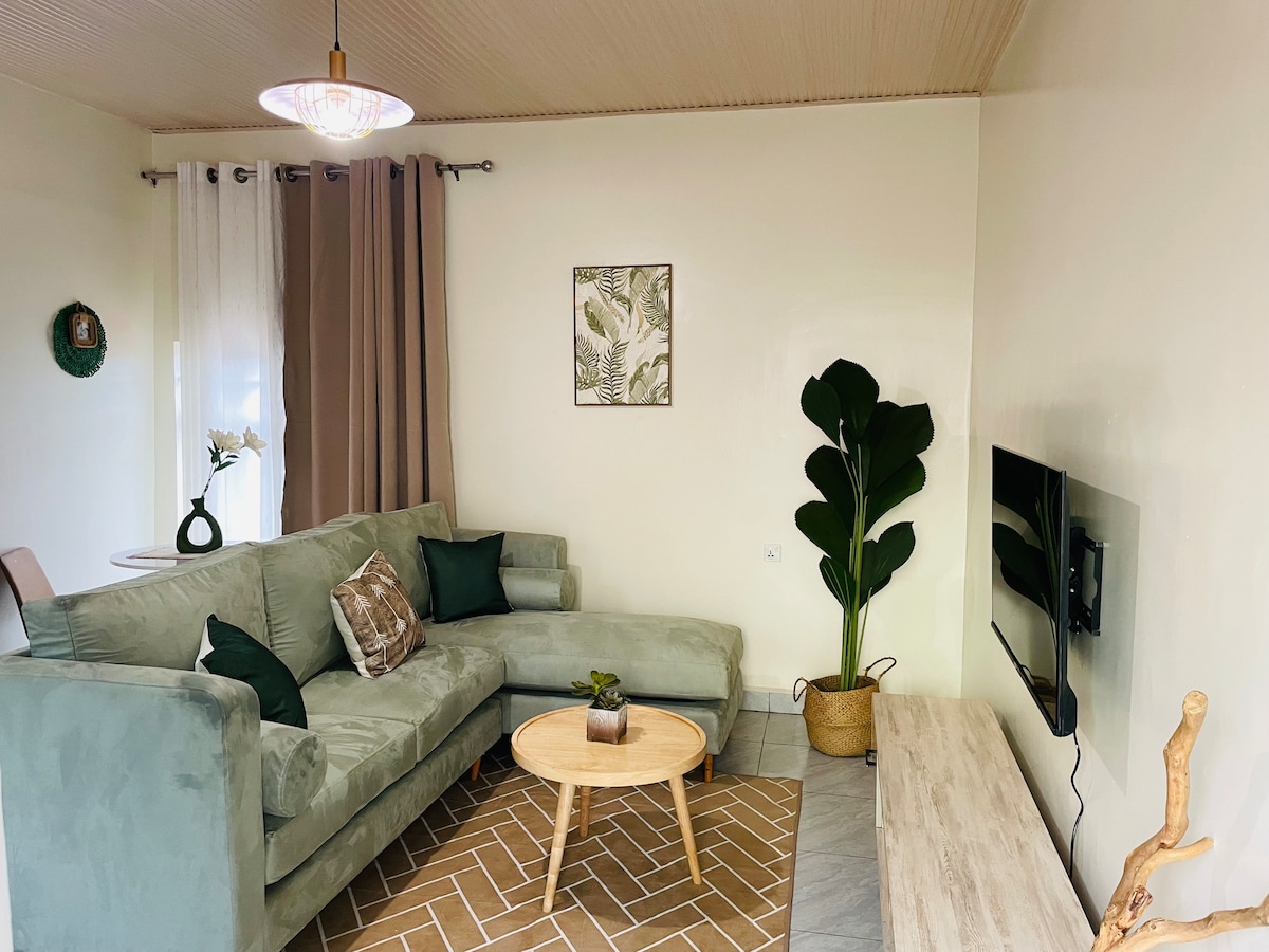 Discover your dream escape in a new tranquil 2 bedrooms, Located in the prime residential area of Kigali (Nyarutarama Golf course), 15minutes from the airport, in a convenient neighborhood, 6 minutes drive to Kigali Convention Center, 5 minutes walking distance to Brioche Café, (Woodlands,simba) Supermarkets, CaliFitness gym, 3minutes drive to MTN Center, 6 Min to Kigali Heights,A 58 inch smart TV,cable Tv ,Netflix, DSTV,fast internet. It is located on a Tarmac road