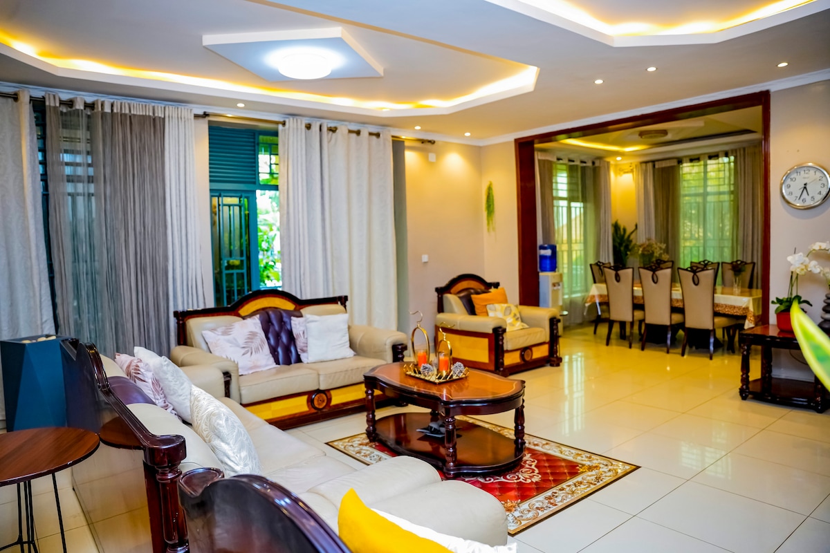 An exquisite brand new 5-bedroom villa (inclusive of a penthouse) with a rooftop deck offering 360-degree panoramic views of Kigali. Situated in the prestigious neighborhood of Kibagabaga, this villa is the perfect escape for locals and travelers seeking luxury, comfort, and convenience. 4-minute walk to Green Hills Academy 5-minute drive to Kigali Golf Resort and Villas 12-minute drive to the Kigali Convention Center 16-minute drive to Kigali International Airport.