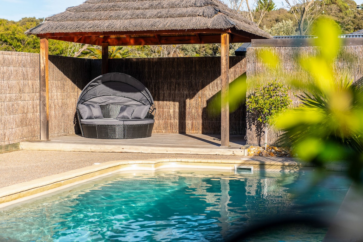 The Nest is a unique listing that has a style all its own. Private luxury accommodation for couples in the hills of McCrae only minutes from the beach! And if the sand is not for you you can relax pool side at the properties pool. The Nest is also located less than 15 minutes away from the Peninsulas finest wineries and only 15mins from the famous Peninsula Hot Springs! And if staying in is your thing we have a soaking tub, Samsung QLED tv with Netflix and gas log fire to sip wine by!