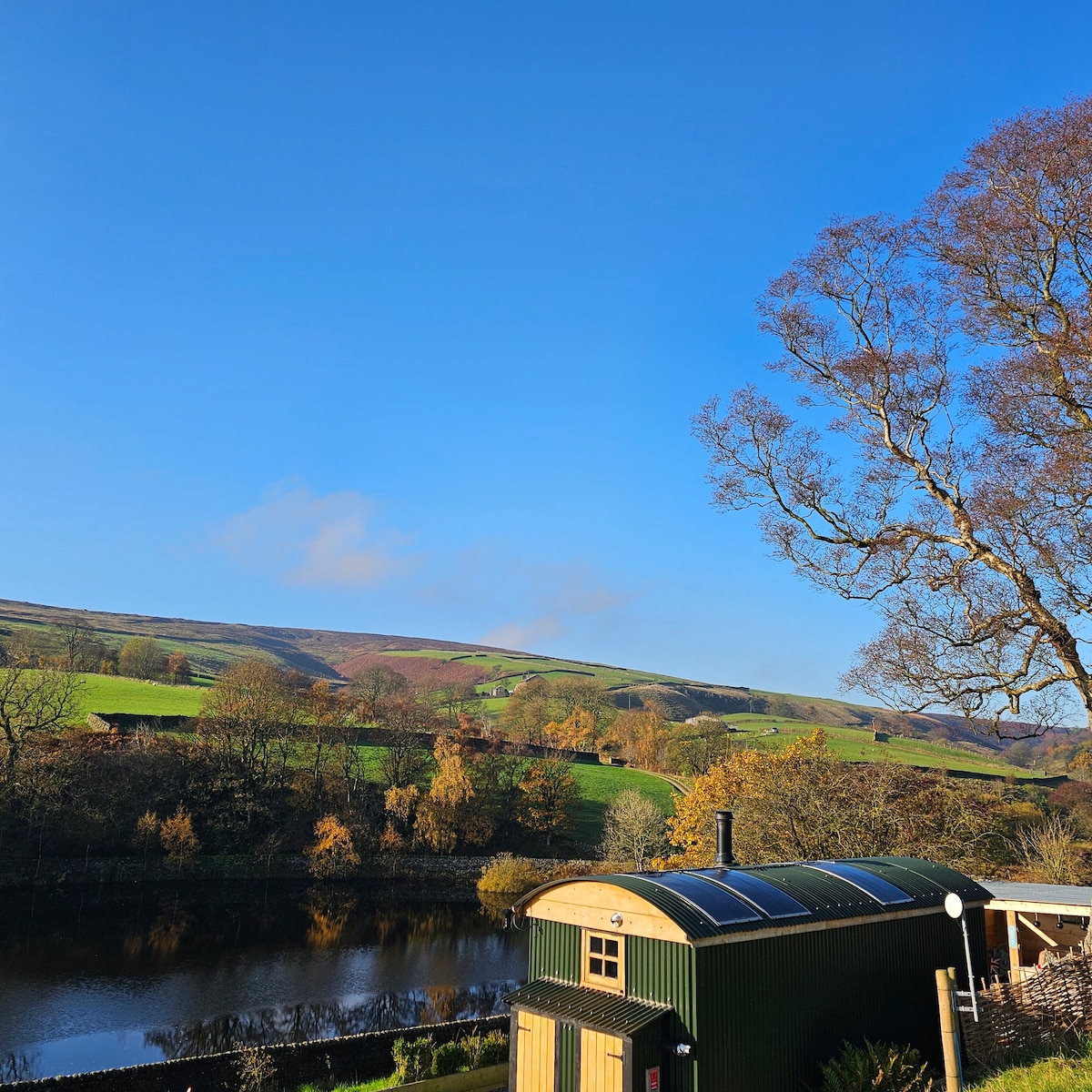 Come and stay in our beautifully finished, tin shepherds hut at the bottom of our garden. We are located in the rolling countryside with extensive views over the vale of York. After a day of exploring this AONB, there’s nothing like cooking tea over the fire pit or wood pellet pizza oven followed by a dip under the stars in our rustic hot tub. Fall into a fresh clean bed and wake up to the sound of the dawn chorus. Our bathroom barn provides all your needs for a morning freshen up!See you soon.