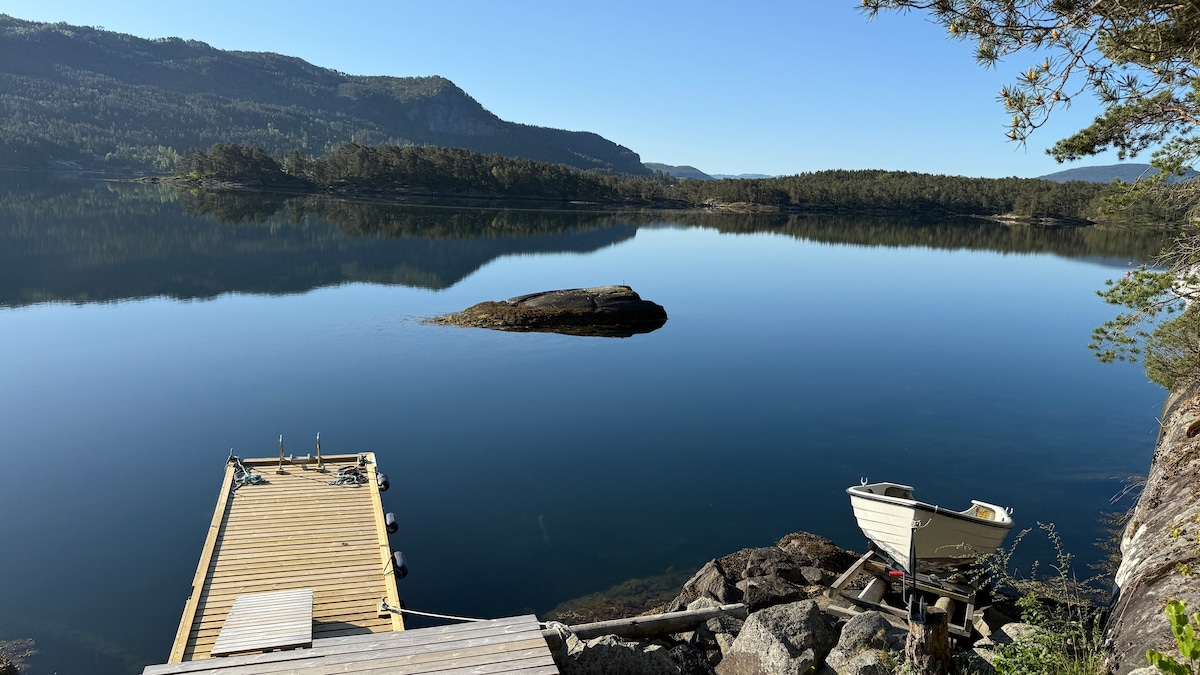 Enjoy fantastic sea views and sunsets in a new modern cabin! Its a quiet area surronded by amazing views and lovely hikes just outside the cabin. It's only one hour drive from Stavanger and the airport. 10 min walk to public beach. All on one level, 150m2. Large private parking. Jacuzzi and big terrasse. Perfect with small kids - relax in the jacuzzi after hike or when kids are sleeping. We have babychairs,babybed etc. Well equipped kitchen, homeoffice with 2screens Pets not allowed