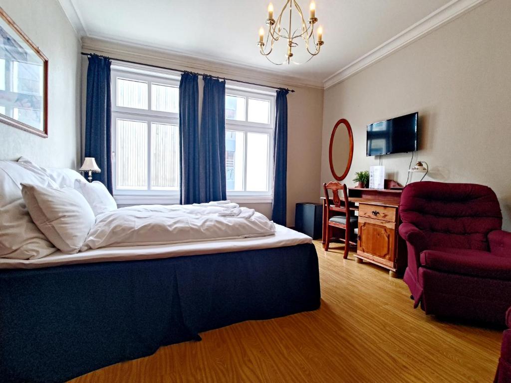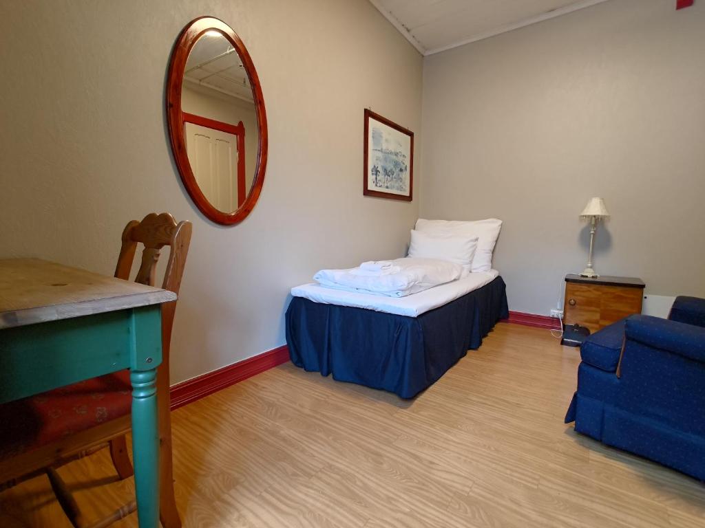 Hotellrom med dobbeltseng, liten sittegruppe, bad og fantastisk utsikt over fjorden. Kaffemaskin og vannkoker på rommet. Rett nedenfor er det et stort tomt helt ned mot sjøen som utleieren er eier av. Tomta kan derfor benyttes av gjestene. Det er restaurantdrift i samme bygning, ved fint vær kan en sitte ute og kose seg med en god middag og noe godt i glasset. Mulig å utvide leien (med å låse opp en mellomdør) til en leilighet bestående av suite/ hotellrom. Mulighet for frokost.
