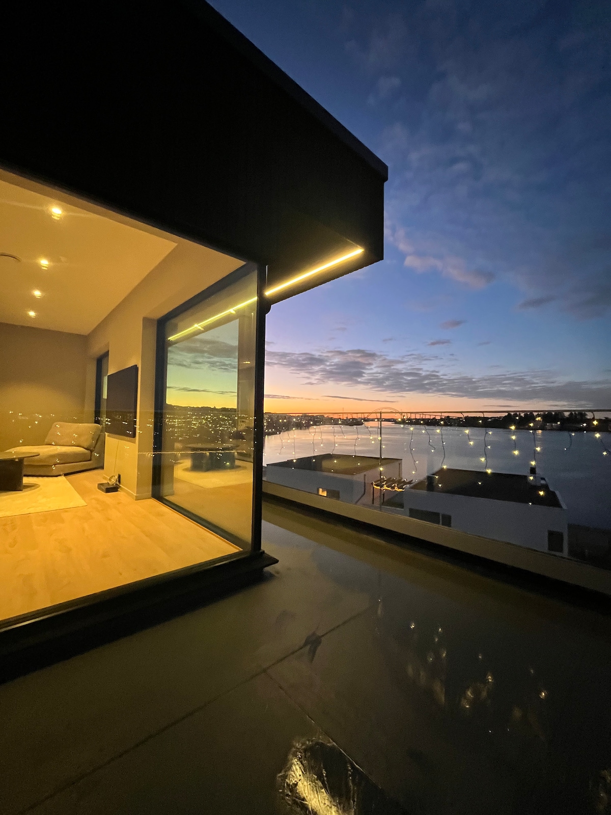 Beautiful house with all amenities! Four bedrooms with comfy beds, two full bathrooms with heated floors, a fully equipped kitchen, washer, dryer, and living rooms with large windows offering stunning fjord views. TV room in the basement, balcony with spectacular view, hot tub, and outdoor furniture. Close to Stavanger, grocery stores, and amazing hikes like Pulpit Rock. Welcome to our home!