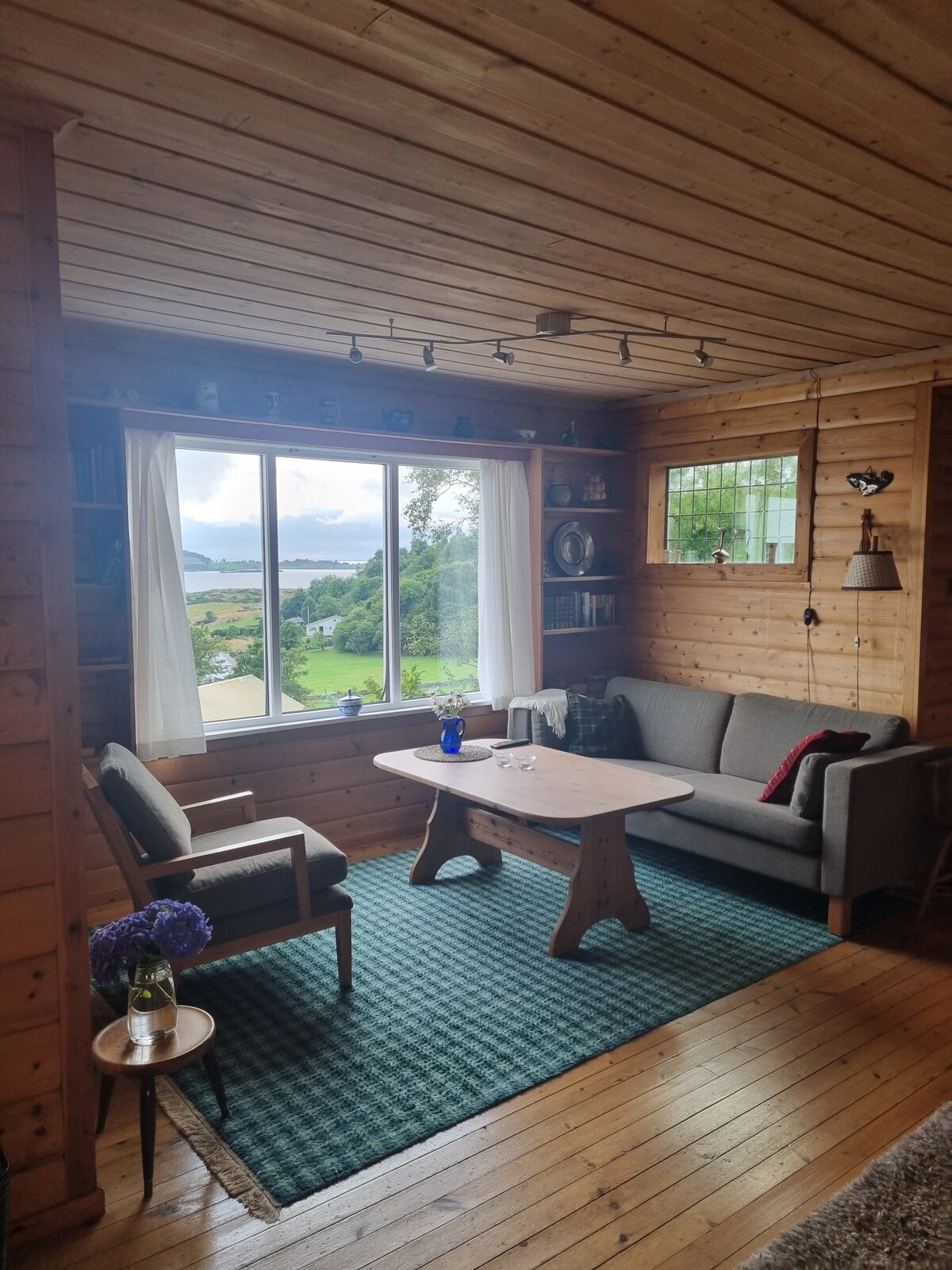 Relax in our peaceful cabin surrounded by nature, just a short walk to the ocean and with beautiful hiking trails nearby. Enjoy stunning fjord views from the living room or the covered veranda. Wake up to birdsong and spend your evenings by the firepit — inside or out. The perfect spot for a cozy, scenic getaway.