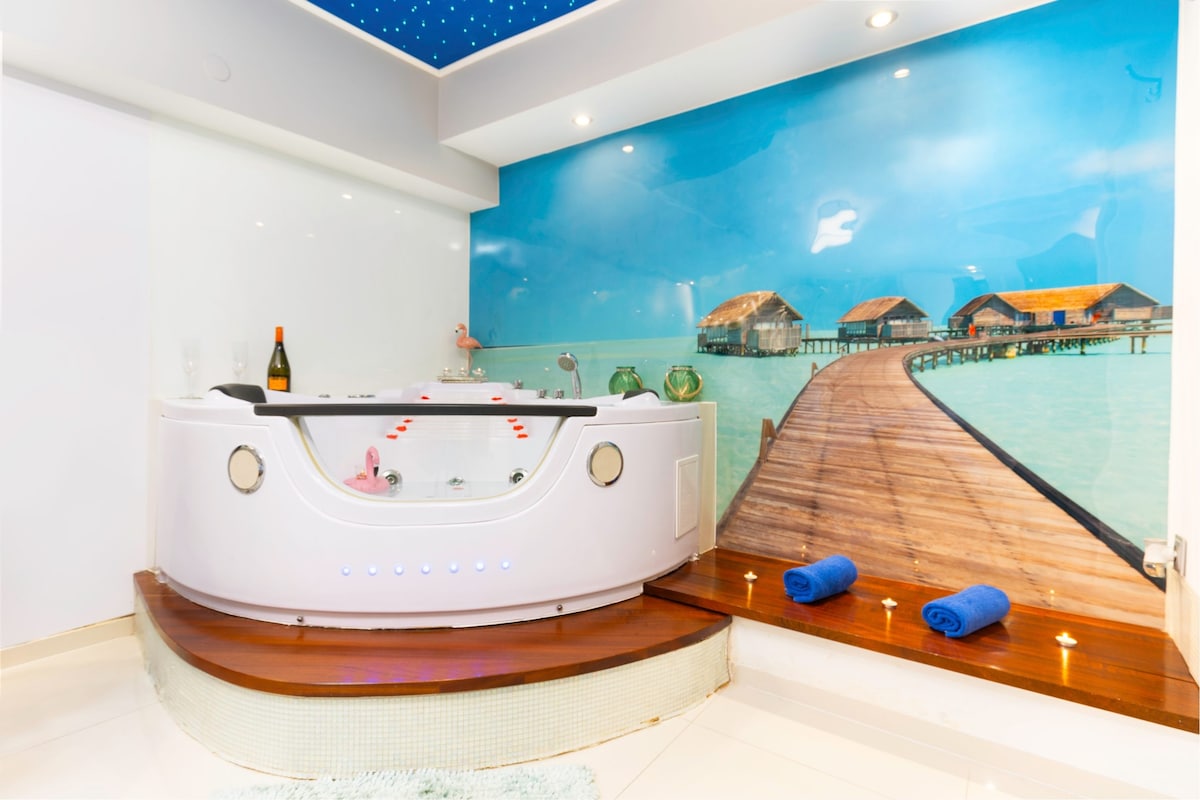 在带按摩浴缸和桑拿浴室的豪华公寓中放松身心