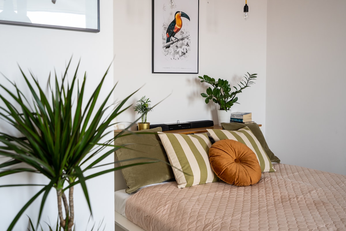 设计师公寓110平方米,配备加大双人床+设备齐全的厨房