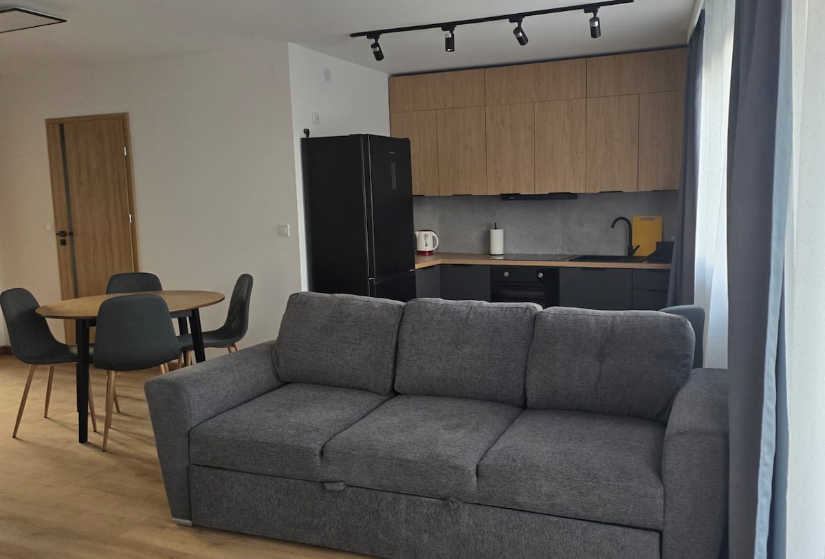 Nasz apartament jest położony 5 minut spacerem Dworca Głównego Kraków dlatego może być doskonałą bazą wypadową w każdy krakowski zakątek (20 min spacerem na Rynek Główny!!!). Jednocześnie jest usytuowany na nowoczesnym, strzeżonym osiedlu, co gwarantuje ciszę i spokój po eksploracji miasta. Parking strzeżony jest 2 minuty spacerem od mieszkania. W mieszkaniu wygodnie spędzą czas 2 osoby, jednak jeżeli potrzebujesz miejsc noclegowych dla 4 osób jest to możliwe dzięki rozkładanej sofie w salonie.