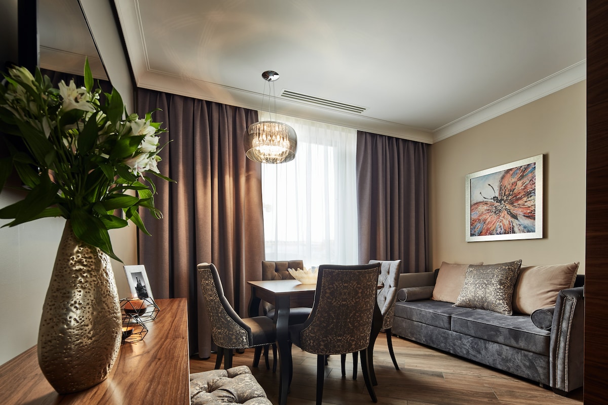 Open the lush floor-to-ceiling drapes to look out onto a cityscape that's barely changed in well over a century. On the left, you'll see the medieval gothic towers of the St. Mary's Basilica from where the famous trumpet call is played. This bright, stately studio features chic furnishings and stylish pieces of modern art. Situated next to the Market Square, it is the best place to explore the city's rich history.