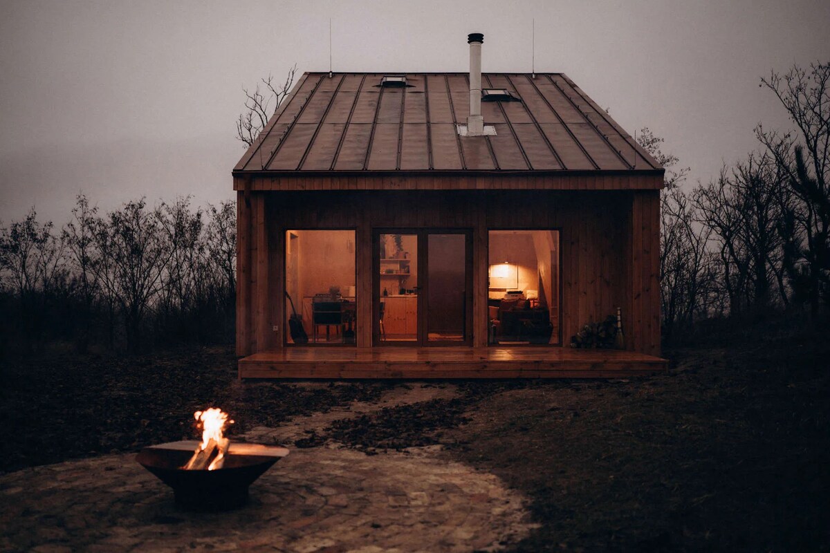 Запрошуємо вас до нашого затишного будиночка. Тут ви зможете відпочити від міської метушні та насолодитися гармонією з природою. Будиночок має все необхідне для комфортного проживання: Зручності: Wi-Fi, опалення (електрообігрівач і дров'яна пічка) та окрема кухня в хвилинному доступі. Вбиральня та душ в окремій будівлі в 20-30 секундах. Зона відпочинку: дворик з барбекю та відкритою кухонькою з холодильником. Околиці: Eco-canping Krucha, поруч пагорби, ліс, Дніпро та маршрути для прогулянок.
