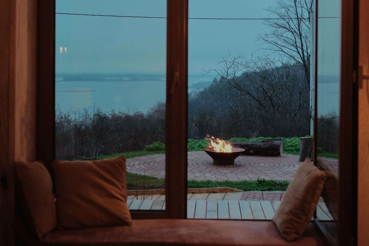俯瞰第尼普罗河( Dnipro River )的现代小屋