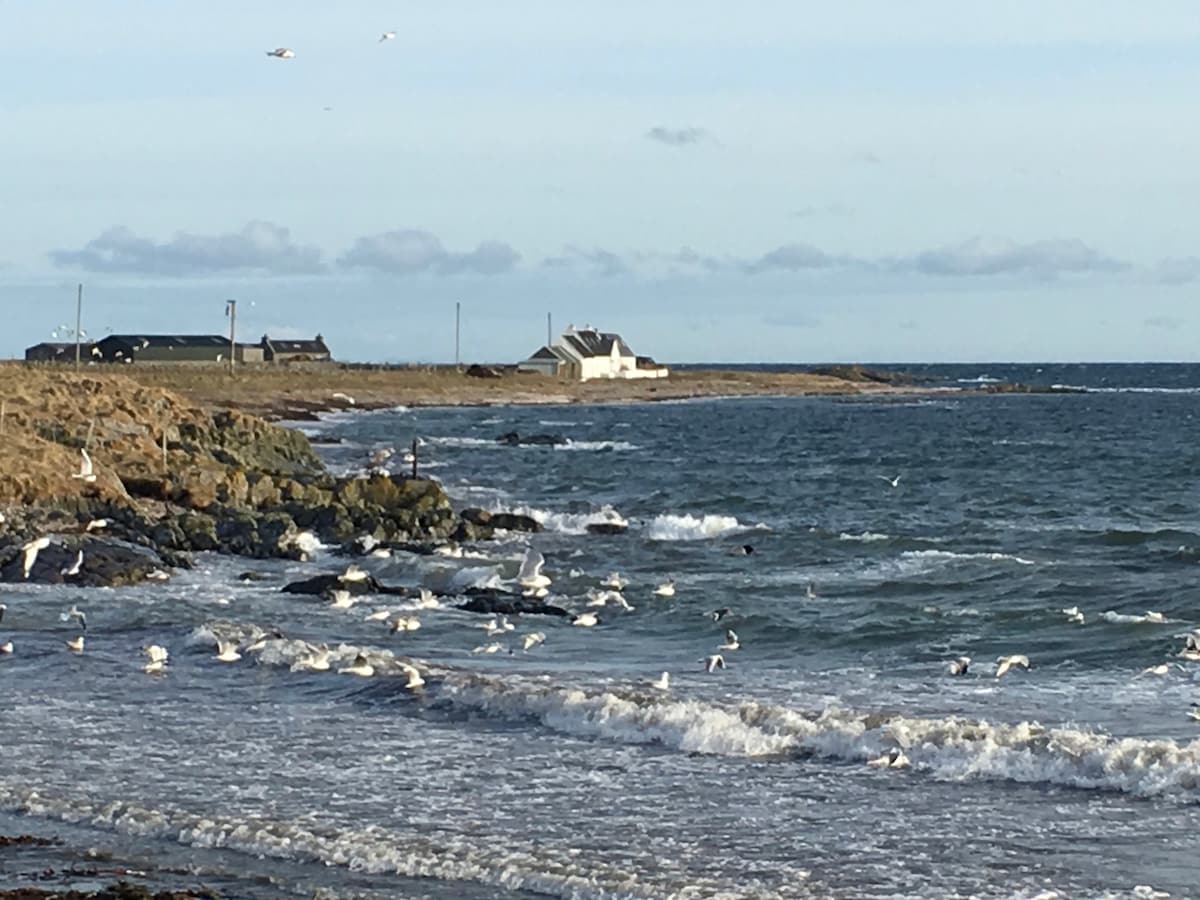 Muin Shepherd Hut is complete with: 2kw Shower (2 minutes of hot water/5 minutes to re-heat) toilet, sink, Belfast sink, fridge, ceramic hob, Air Fryer, underfloor heating, wood burning stove, TV, Double bed with King size duvet, large decked area, enclosed private garden (dog friendly) and views over to the Isles of Mull and Coll and onwards out over the Atlantic Ocean. Throw in the odd sea eagle that visits us, red deer abound, pine martins, otters and the dolphins playing off the pier!!