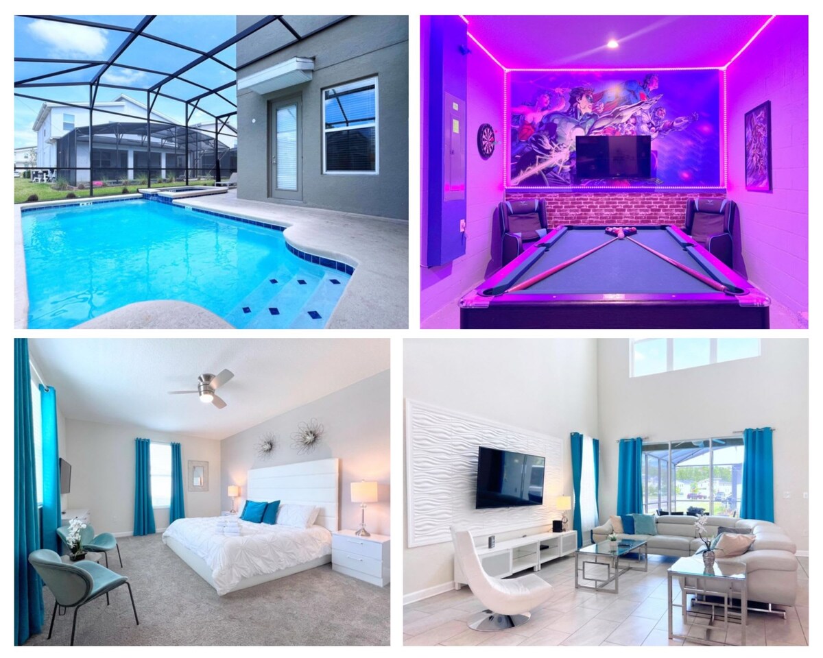 Modern 3,000sf luxury home, with 5 bedrooms, at world's renowned Encore Resort at Reunion. Featuring 5 bedrooms, 5 1/2 bathrooms, a game room, a beautiful backyard, a private pool and spa. 6 Minutes away from Super Walmart and Publix supermarket 15 Minutes away from Disney Parks 15 minutes away from Disney Springs 15 Minutes away from Premium Outlets 20 Minutes away from Universal Studios 20 Minutes away from International Drive attractions *PLEASE MAKE SURE TO READ THE HOUSE RULES*