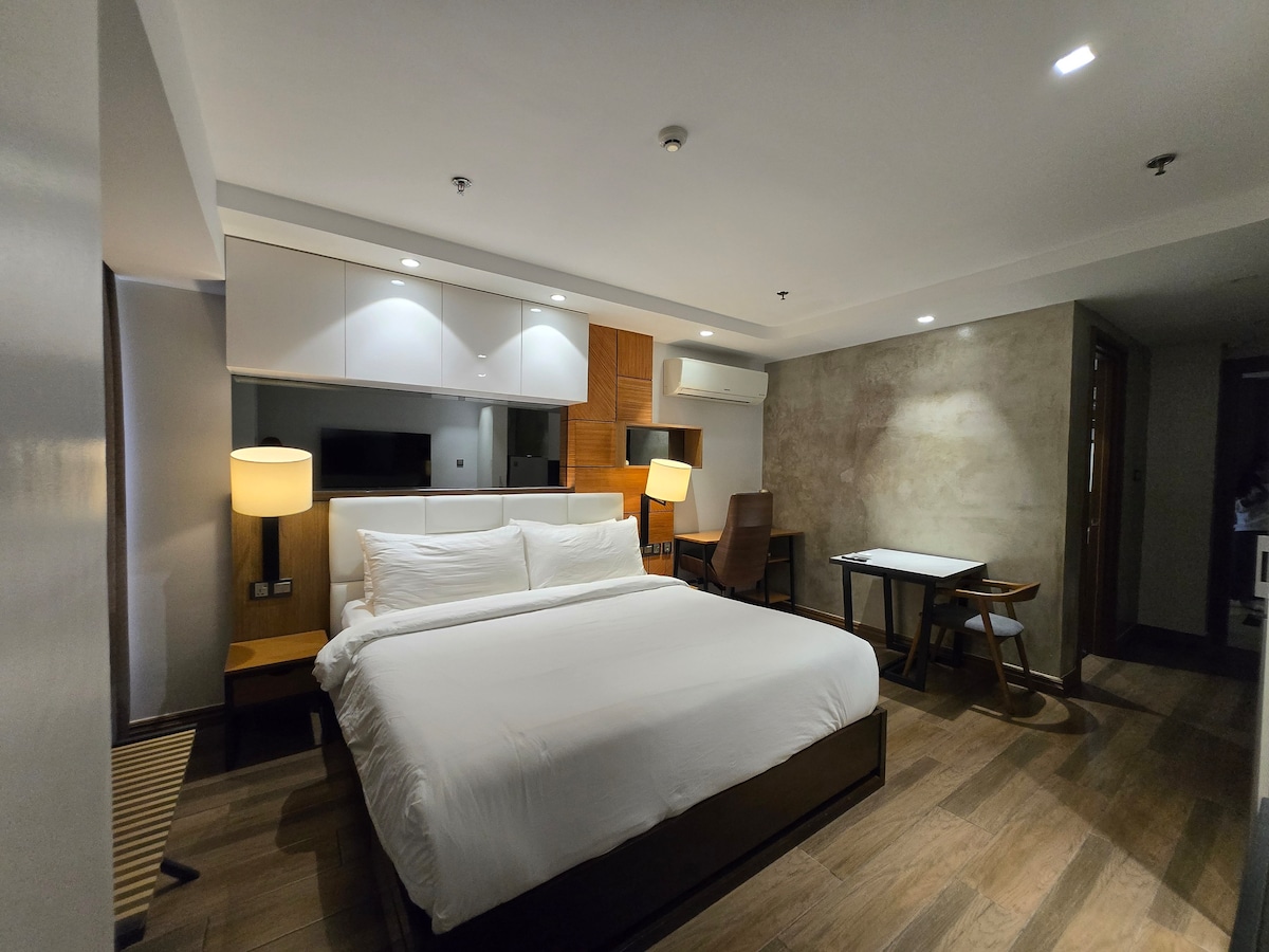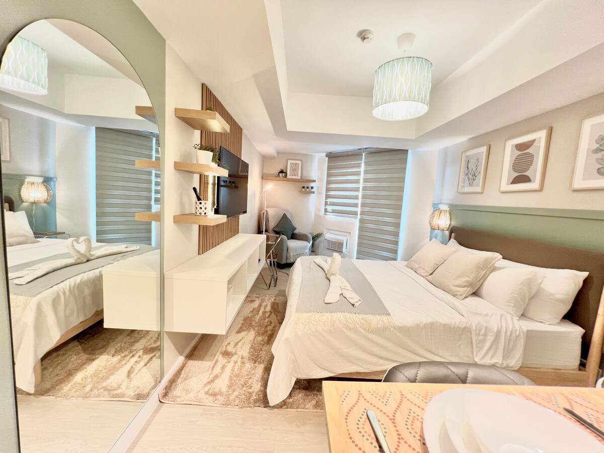 Discover your peaceful oasis in the Clark Freeport Zone! 🌿 This pet-friendly, 40sqm studio is a serene retreat designed for total comfort. You'll love the building's minimalist, Korean-inspired aesthetic. 🇰🇷 Sleeping 4 with a queen bed & sofa bed, it has a full kitchen & washer for a true home-away-from-home feel. With Lawson, 7-Eleven, and the Hilton just a short walk away, it’s the perfect, convenient base for all your Clark adventures.