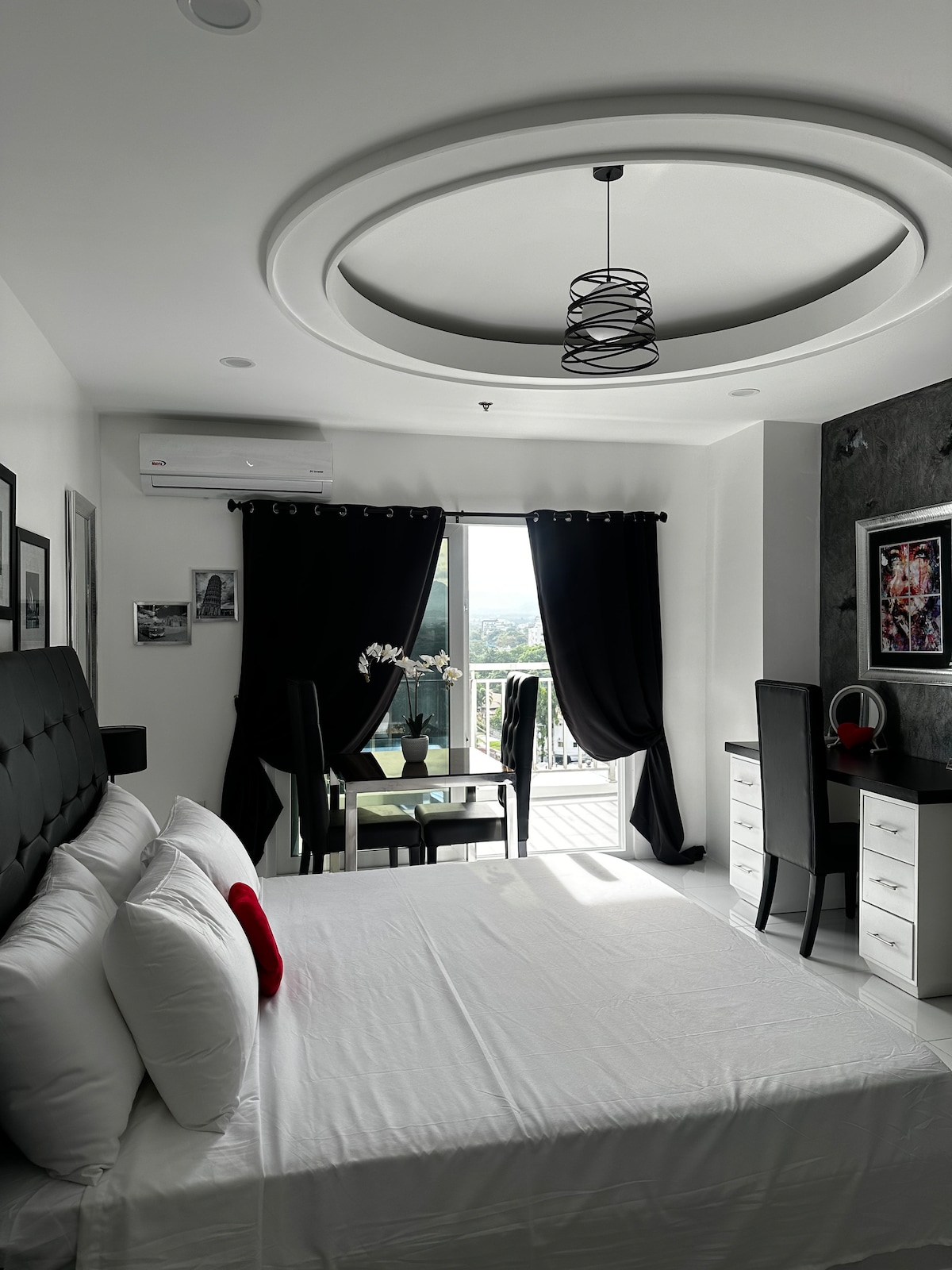 2nd floor studio with patio above pool, Executive Internet package, 55" Samsung Smart 4K TV, fully equipped kitchen with new cookware, utensils, and flatware. New drip coffee maker, microwave. A non-smoking unit with walkout balcony overlooking the pool area. La Grande Residence has become the premier choice for both business and tourists visiting Clark Freeport and the Pampanga area. Kick back and relax in this calm, secure, and stylish space.