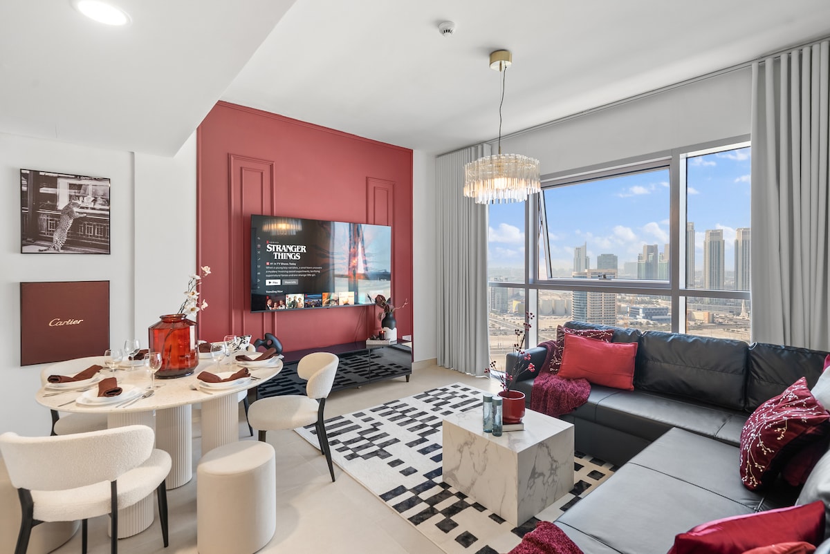 Experience luxury at our unique, Cartier-themed Residence on Al Reem Island. This modern 2BR apartment offers stunning sea views, elegant interiors, and access to premium amenities. Enjoy a full automatic espresso machine with grinder and milk frother, plus free premium coffee beans for the perfect morning coffee.