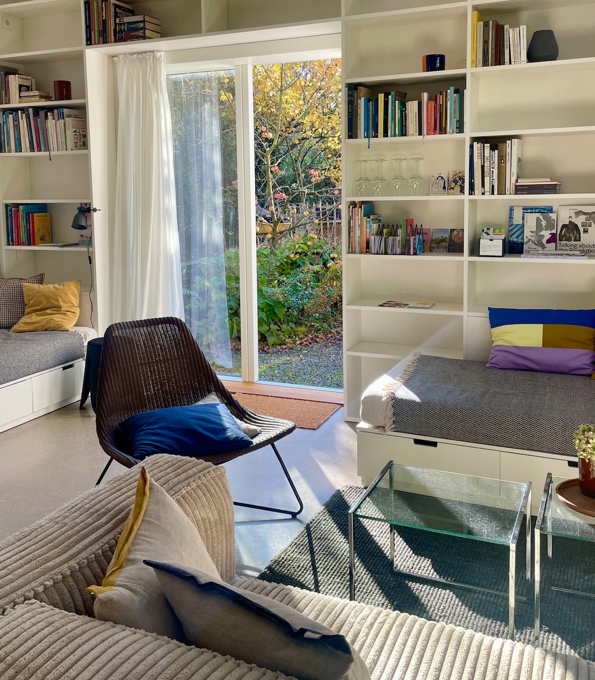 Im Hof unseres Jugendstil Stadthauses haben wir für euch diese kleine Unterkunft vorbereitet. Durch die große Toreinfahrt des Haupthauses gelangt ihr zu dem nur von euch genutzten Hof mit Häuschen. Dort steht euch auch ein sehr kleines Badezimmer und eine kleine Kochgelegenheit mit Kühlschrank zur Verfügung. Die Terrasse kann im Sommer zum Beispiel zum Frühstücken in der Sonne genutzt werden.