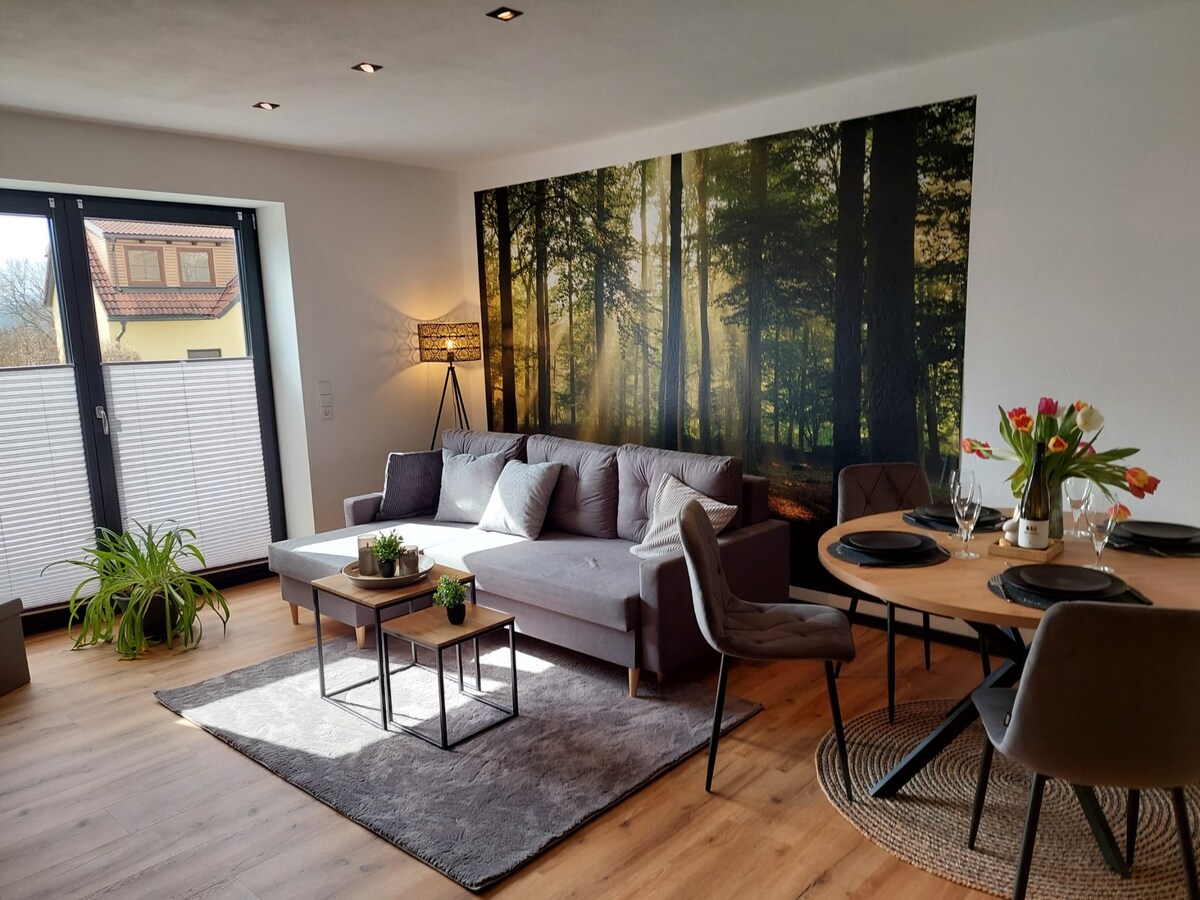 We offer a furnished convenient 1-bedroom apartment for 1-2 people south of the Thuringian Forest. Our apartment is very comfortable and also has underfloor heating and Wi-Fi. The room is suitable for relaxing, sleeping and working. It has a cozy couch for up to 2 people. The kitchen has a rustic flair with a small table and two chairs. To the bathroom belongs a new shower, sink and a toilet. In the summer-time you can also use the terrace to enjoy the sun just outside of the apartement. In summer, you can explore countless trails in the Thuringian Forest. Unwind and enjoy in surrounding traditional pubs with traditional Thuringian and Franconian cuisine. In winter, there are many cross-country ski and skating trails. You can practice your winter sports actively or just take a relaxing walk in fresh and crispy winter air. For Cross-country skiers there is a variety of difficulties available, from simple to challenging trails. For skiers and snowboarders nearby slopes also rank from simple to challenging. At ski arena Silbersattel in Steinach, only 15 minutes drive from us, you can get the kick out of winter sports, even if you are just beginner. The area further offers the residence of Coburg (Bavaria), the Upper Main-Therme Bad Staffelstein (Bavaria) and the Meiningen Theater which are all worth a visit. Since we live next door to the apartment and are very familiar with the area, we also give you information about outdoor activities and other attractions in the area. If you have any questions prior to booking, feel free to contact us any time! Kind regards!