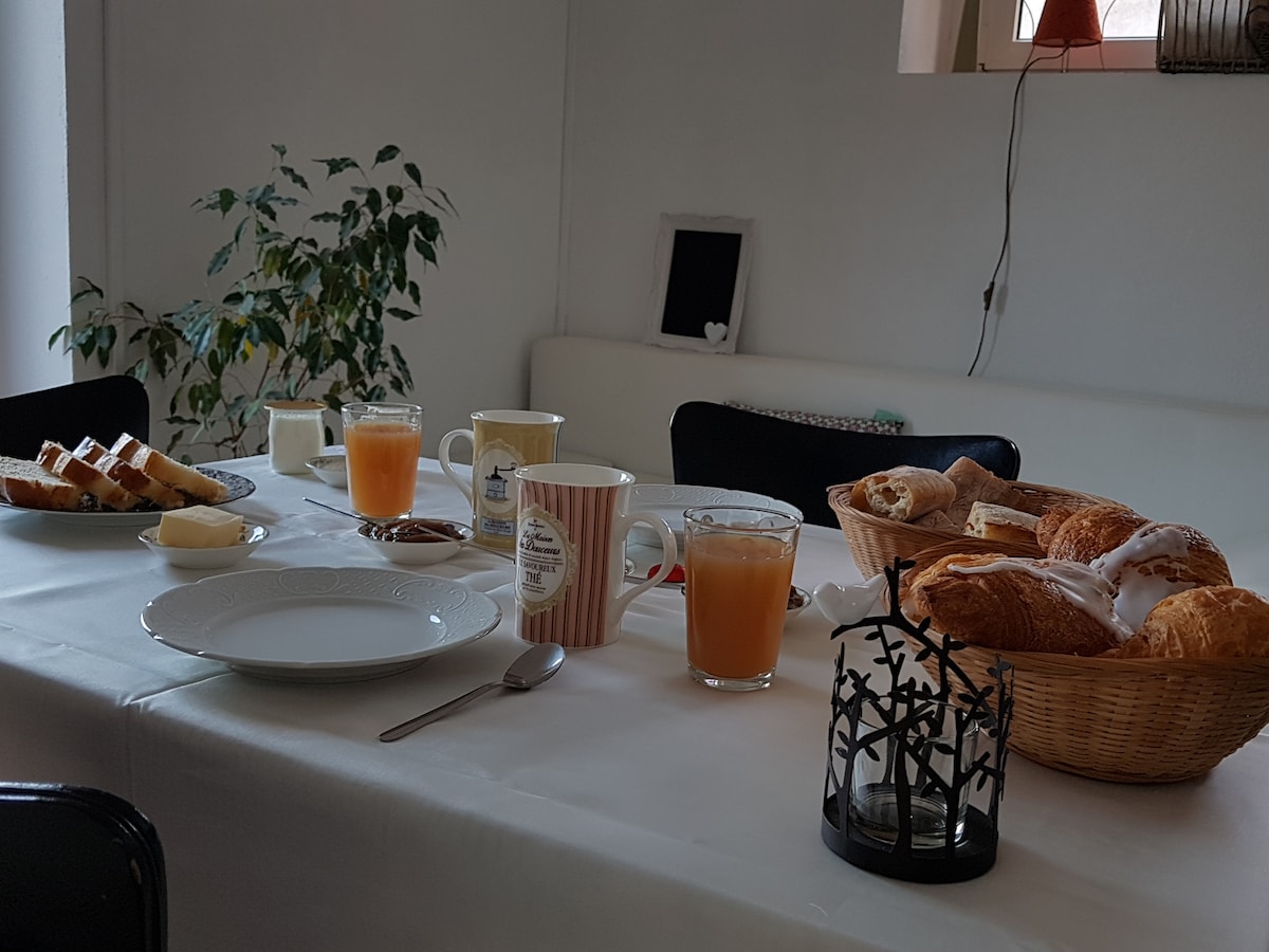 Bienvenue au Pays du Verre et du Sabot. Venez vous ressourcer au My Zen Thal et découvrir notre belle région où artisanat et convivialité ne font qu'un. Situées à 100 mètres environ du Centre International d'Arts verrier, la chambre Cocon est dotée de sa propre salle de bain. Le logement dispose également d'une pièce de vie commune où vous sera servi le petit déjeuner. Le petit déjeuner est fait maison (confitures, pain, yaourts)..