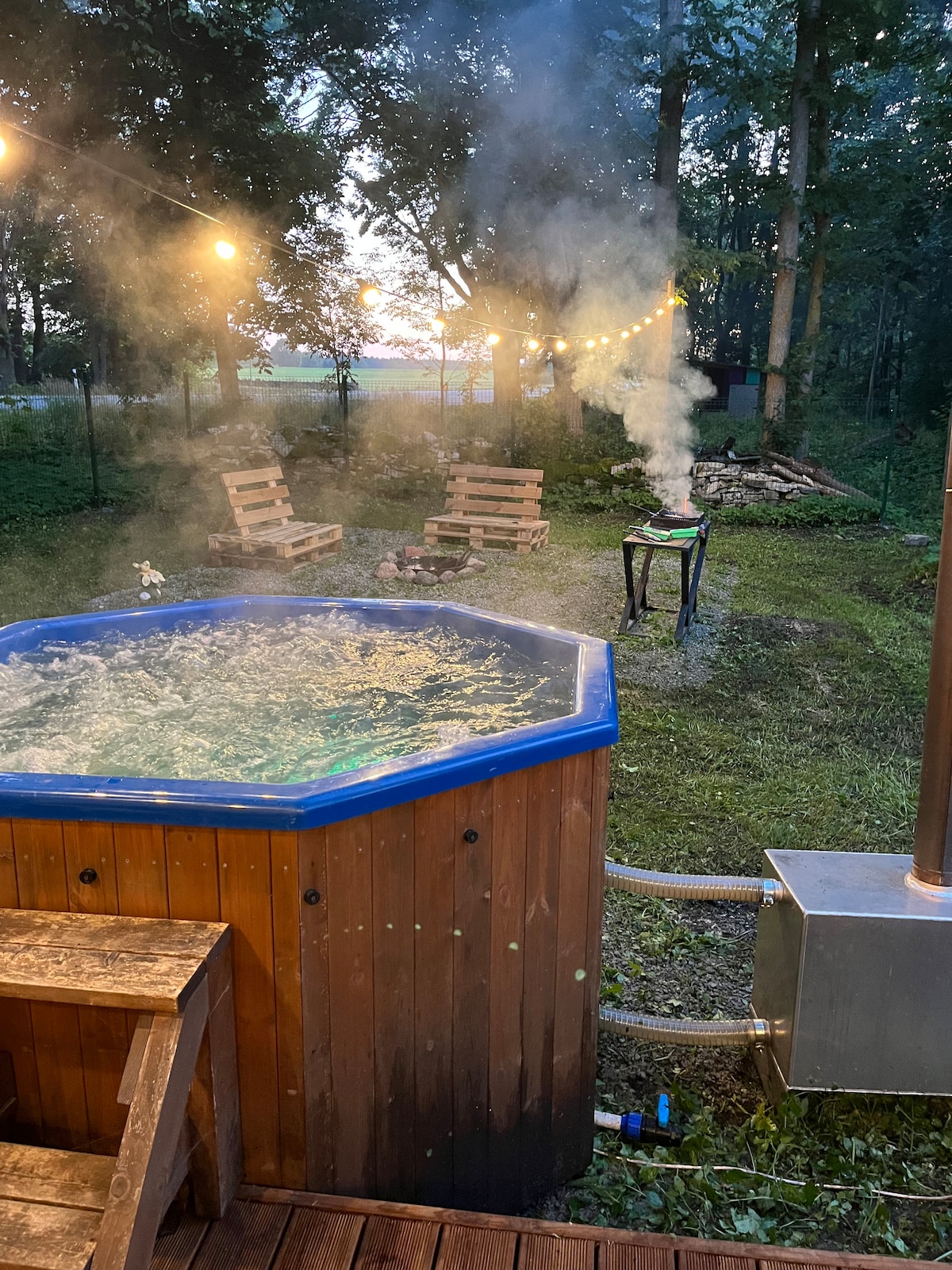 Unser Ferienhaus haben wir im Jahr 2023 komplett restauriert und neu eingerichtet. Das Haus hat 3 Schlafzimmer, ein großes Wohnzimmer mit Kamin und mit Blick auf den Garten und den Sonnenuntergang. Vom Wohnzimmer gelangt man über die große Terrasse direkt in den Garten. Eine Sauna für bis zu 8 Personen ist auch vorhanden. An das Grundstück grenzt ein See mit glasklarem Wasser, in dem man baden kann.
