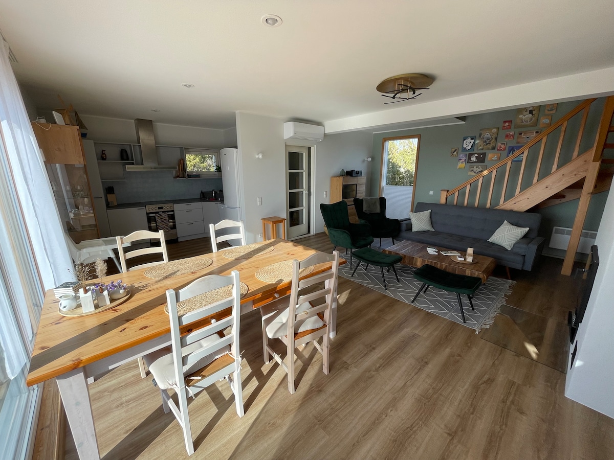 Unser Ferienhaus haben wir im Jahr 2023 komplett restauriert und neu eingerichtet. Das Haus hat 3 Schlafzimmer, ein großes Wohnzimmer mit Kamin und mit Blick auf den Garten und den Sonnenuntergang. Vom Wohnzimmer gelangt man über die große Terrasse direkt in den Garten. Eine Sauna für bis zu 8 Personen ist auch vorhanden. An das Grundstück grenzt ein See mit glasklarem Wasser, in dem man baden kann.