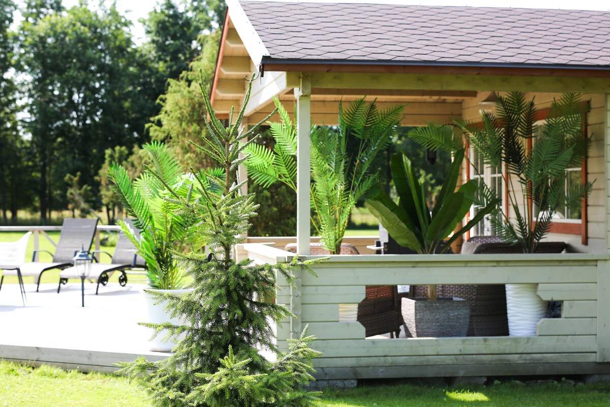 We are surrounded an amazing nature and you can relax and have a good vacation. A superb view to Meelase Windmill. We have a lot of lawned grass and very quiet. This is a private house for maximum 6 people, where is a kitchen where is all necessary utensils, shower room with toilet. There is dining area, sun loungers and sofas in 60m2 terrace and also you can do BBQ. There is huge relaxing area with hammocks and children's slide also in the yard. You can play discgolf.