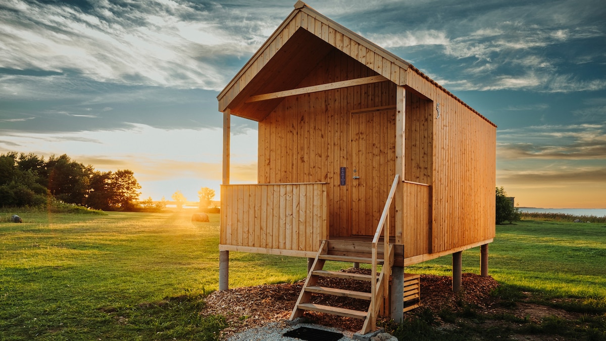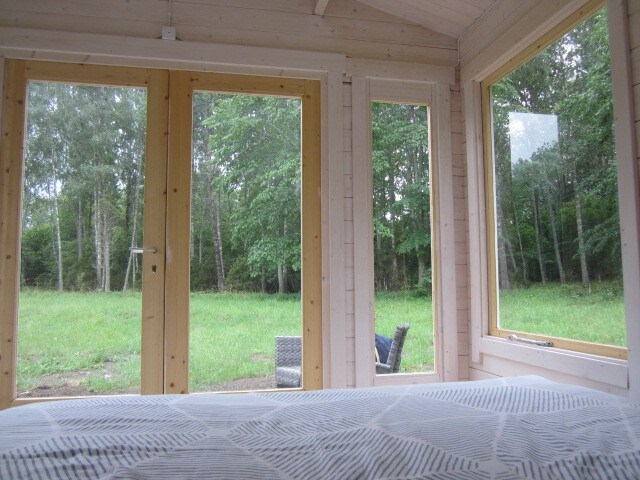 Welcome to explore the beautiful Muhu island! There is a romantic and cozy cabin waiting for you to enjoy the island life. The big windows make you feel you are 100% in the nature. Have a good rest in the queen size bed. There is a BBQ grill and all the dishes to make yourself a nice dinner. A private bathroom with a handbasin and a shower is in your cabin and the outhouse is right next to the cabin. You can relax in the sauna (extra charge 30€/hour) and rent bicycles (5€/day/per bike).