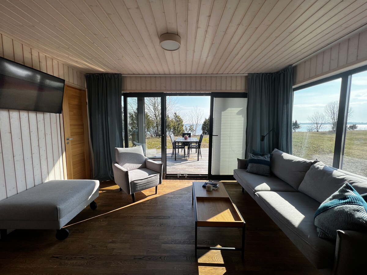 Our small house is located in the private harbor of Ruhve.The 180-degree view of the sea offers wonderful emotions,peace and a perfect opportunity to switch off from everyday life. The house has double bed,a sofa that folds out, a kitchenette,a toilet and a shower.There house is also equipped with Wi-Fi and air conditioning. The price includes the possibility of using a sauna with sea view. For an additional fee,it is also possible to use a hot tub and two SUP boards.