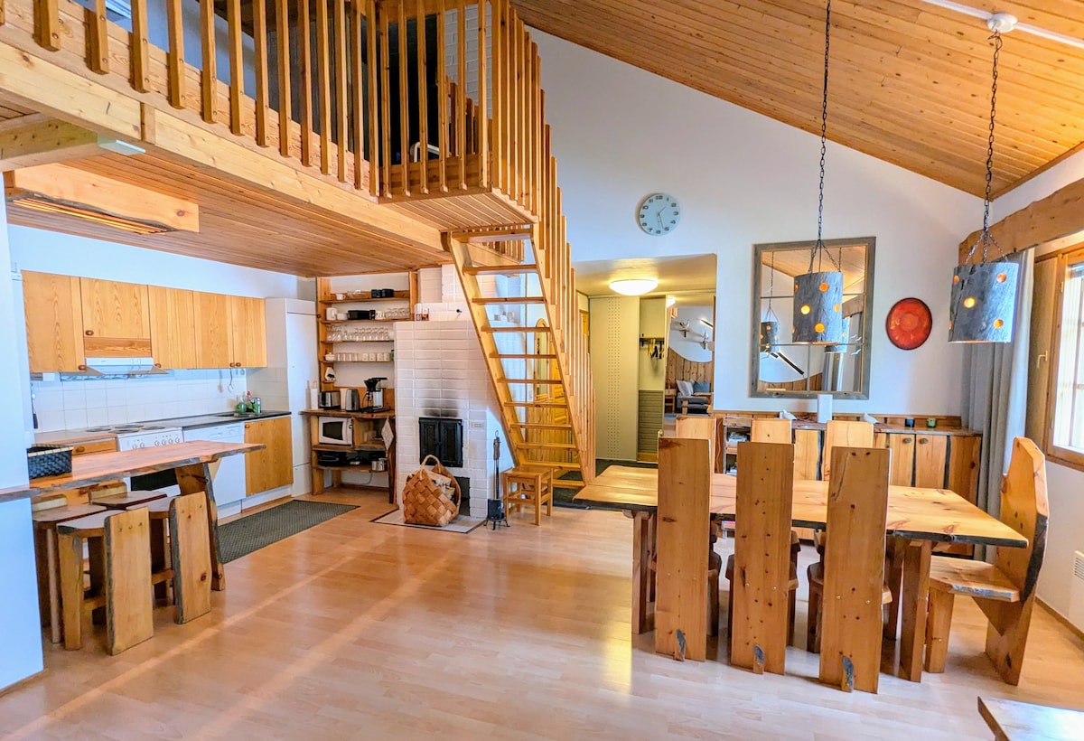 Welcome to my holiday home in the heart of Saariselkä – only a few minutes' walk away of Urho Kekkonen National Park trailheads. I renovated and furnished my home completely in 2023 with all modern amenities while preserving the traditional stone-built fireplace and Finnish sauna. With three beds upstairs and a large sofa bed downstairs, the accommodation is comfortable for various types of groups. The remote working space, fully equipped kitchen and laundry also make it ideal for a longer stay.