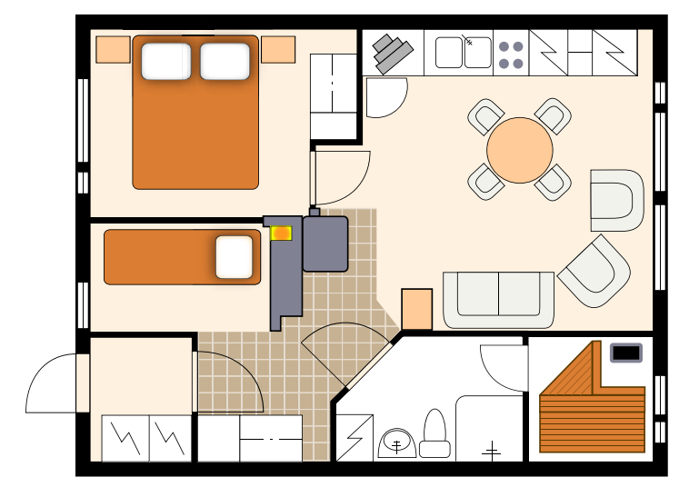 带桑拿的两室公寓