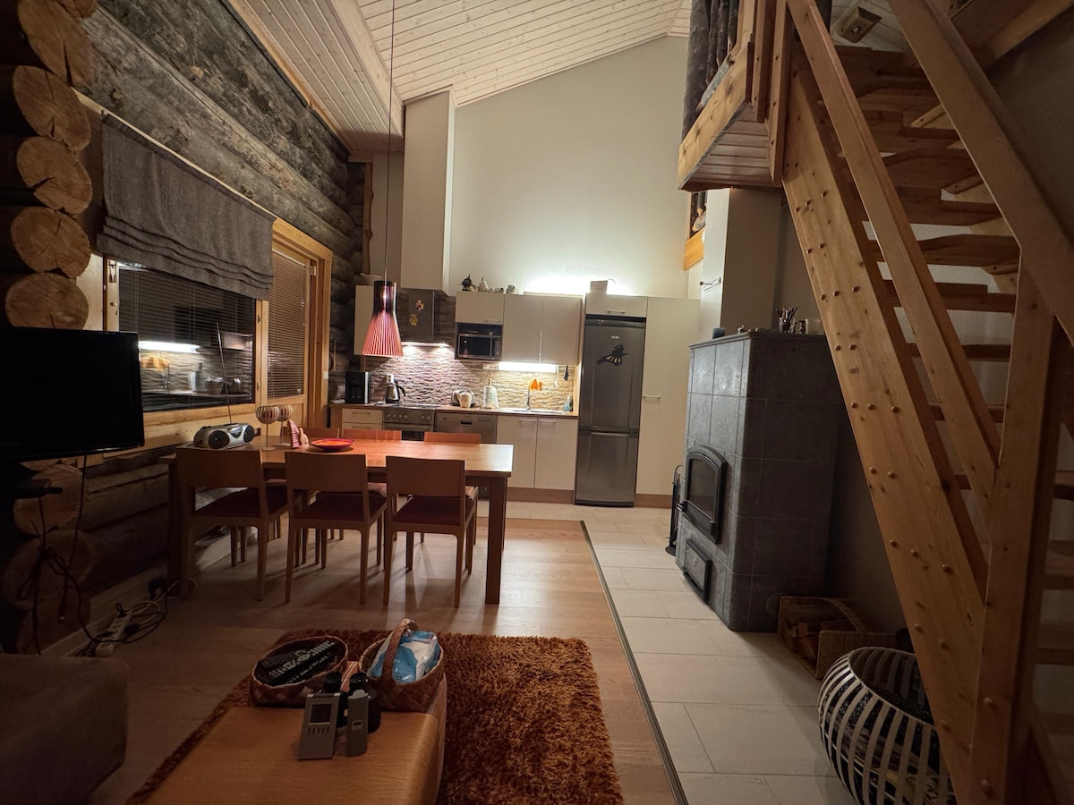 Experience the charm of Lapland in this fully renovated and cozy log house - perfect for families or groups. Luxurious and ideally located, it offers breathtaking arctic views and is in walking distance from the shops, restaurants, activities, and Saariselkä's best aurora-watching spots. It is also easily accessible by plane or train. We are happy to help you with all aspects of your stay! Includes a sauna, two fireplaces, WiFi, Netflix, and a park place.