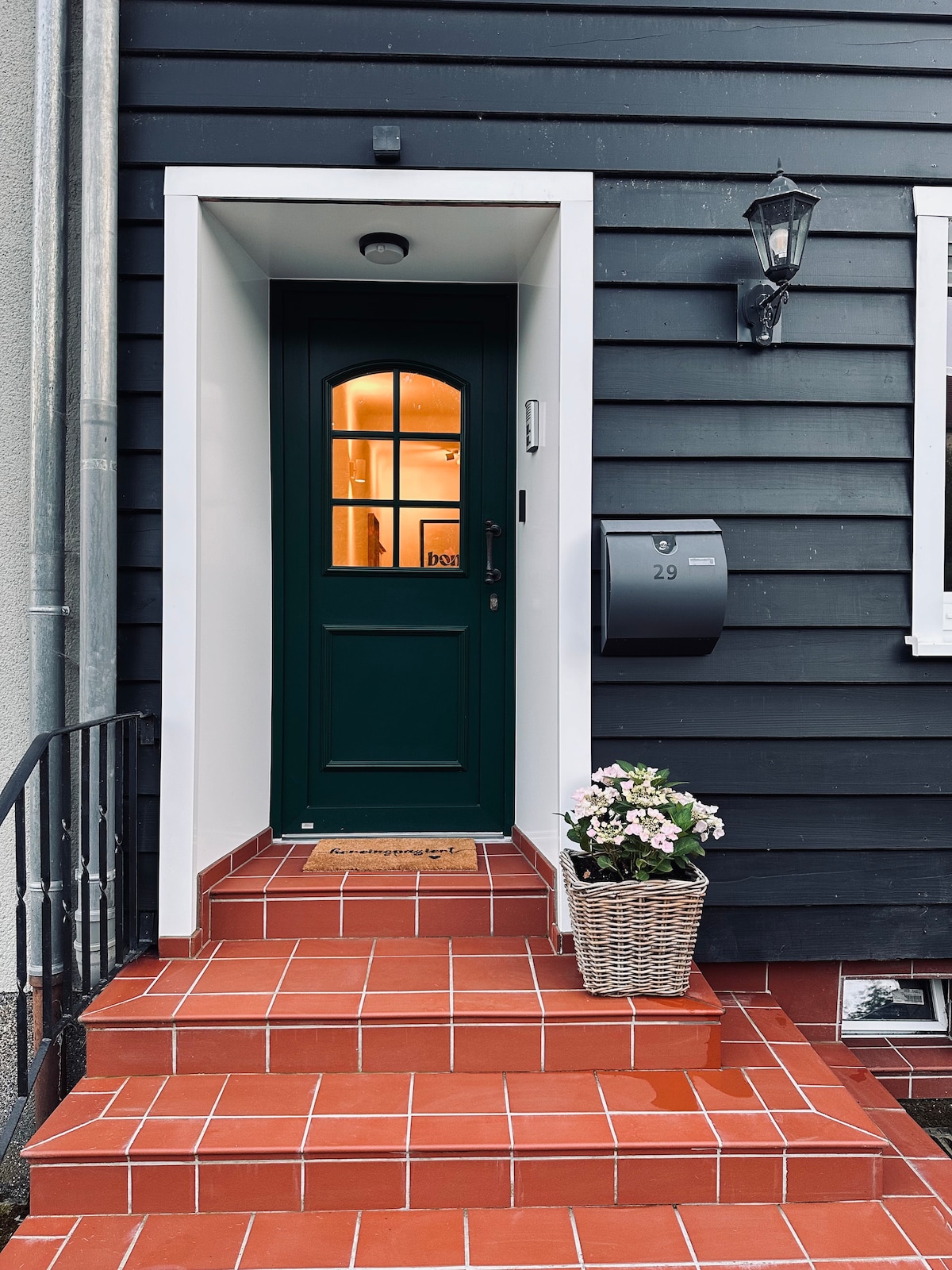 Gemütliche separate und helle 45qm Kellerwohnung (Souterrain) mit einem Schlafzimmer mit Doppelbett, Bad und Wohnküche. Abstellraum mit Waschmaschine und Trockner. Sie werden unsere kleine Sonnenterrasse lieben, auf der Sie Ihren Morgenkaffee genießen können. Seit März 2021 heißen wir Airbnb Gäste willkommen.
