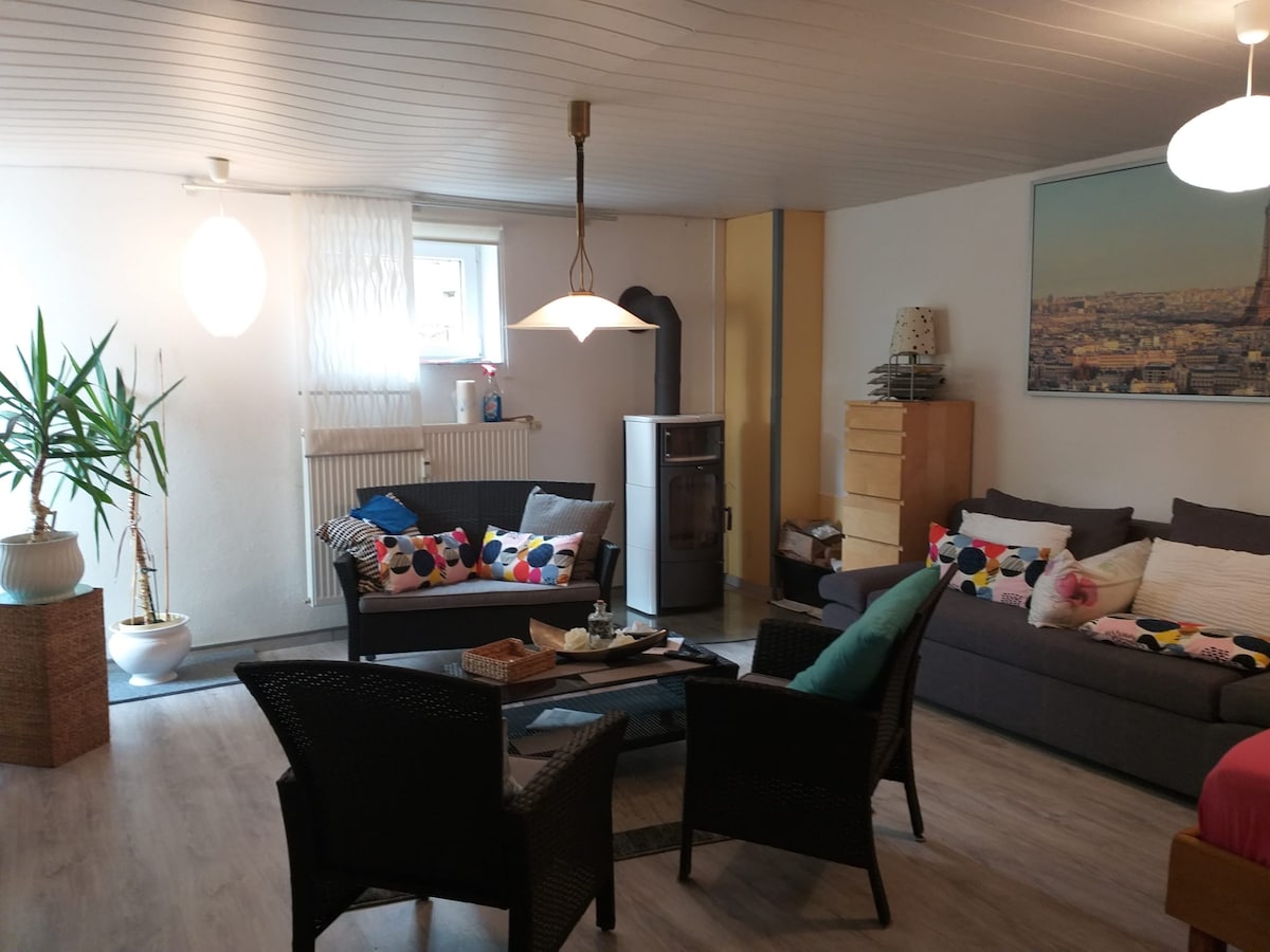 Willkommen in unserer luxuriösen Wellness Ferienwohnung mit Sauna. ganz erhaben auf einem Berg genießen Sie atemberaubende Ausblicke über das Saartal bis über die Grenze nach Frankreich hinweg. - Billardtisch - Gemütlicher Kamin - große Sauna im inklusive Bademäntel und Saunatücher - Großer Garten mit Grillmöglichkeit und vielen gemütlichen Sitzgelegenheiten mit einzigartiger Fernsicht - 1 Kingsize-Bett, 2 Einzelbetten und 1 Schlafsofa - neue Küche mit edlem Gasherd und großem Esszimmer