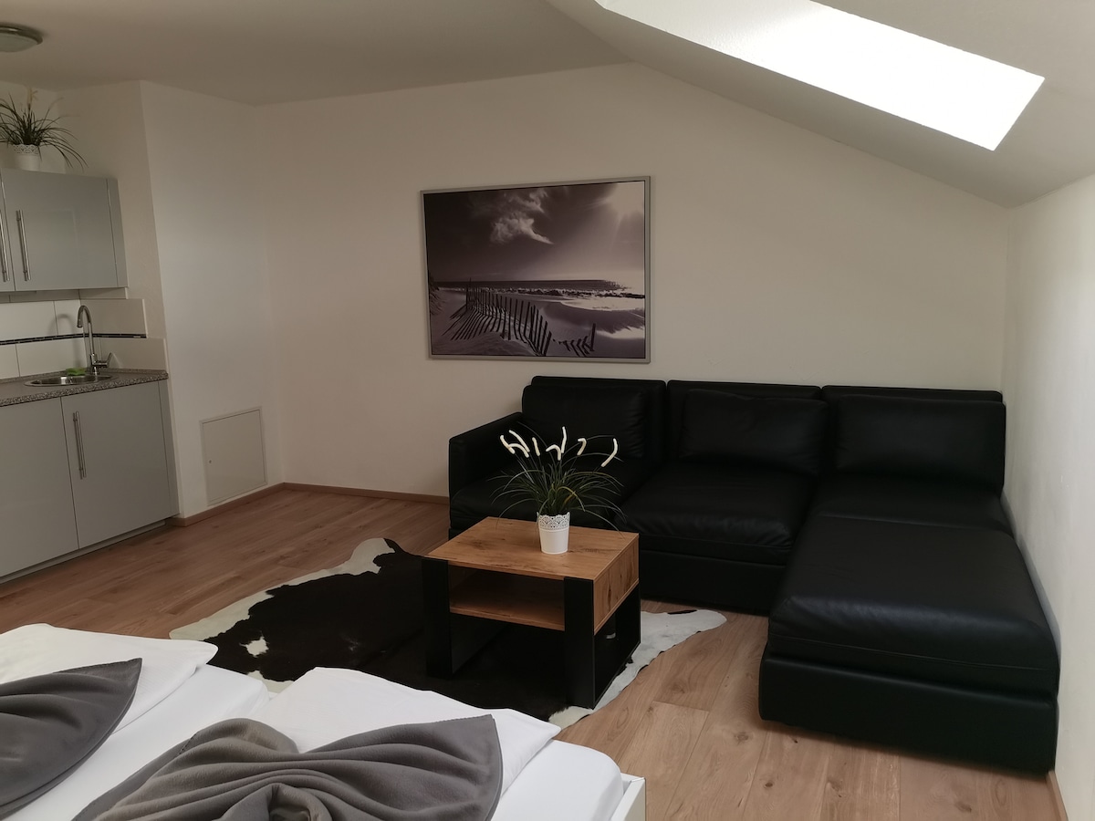 Studio M – Smart wohnen. Gut schlafen! Das neue 30 m² große Studio M bietet alles, was Sie für Wohnen mit Stil brauchen – Boxspringbett 160x200 cm, Schlafcouch 120x200 cm, Küchenzeile mit Induktionsherd, Mikro-Backofenkombi, Smart-TV, Klimaanlage, Rollladen inkl. 1x wöchentliche Reinigung und Wäschewechsel inkl. Hotel-Schwimmbad und Sauna inkl. Nutzung des FitnessLoft in der Stadt Parkplatz buchbar Frühstück buchbar Hoteleigenes Bistro 24/7 Getränke-Snack Automat in der Lobby Rezeption