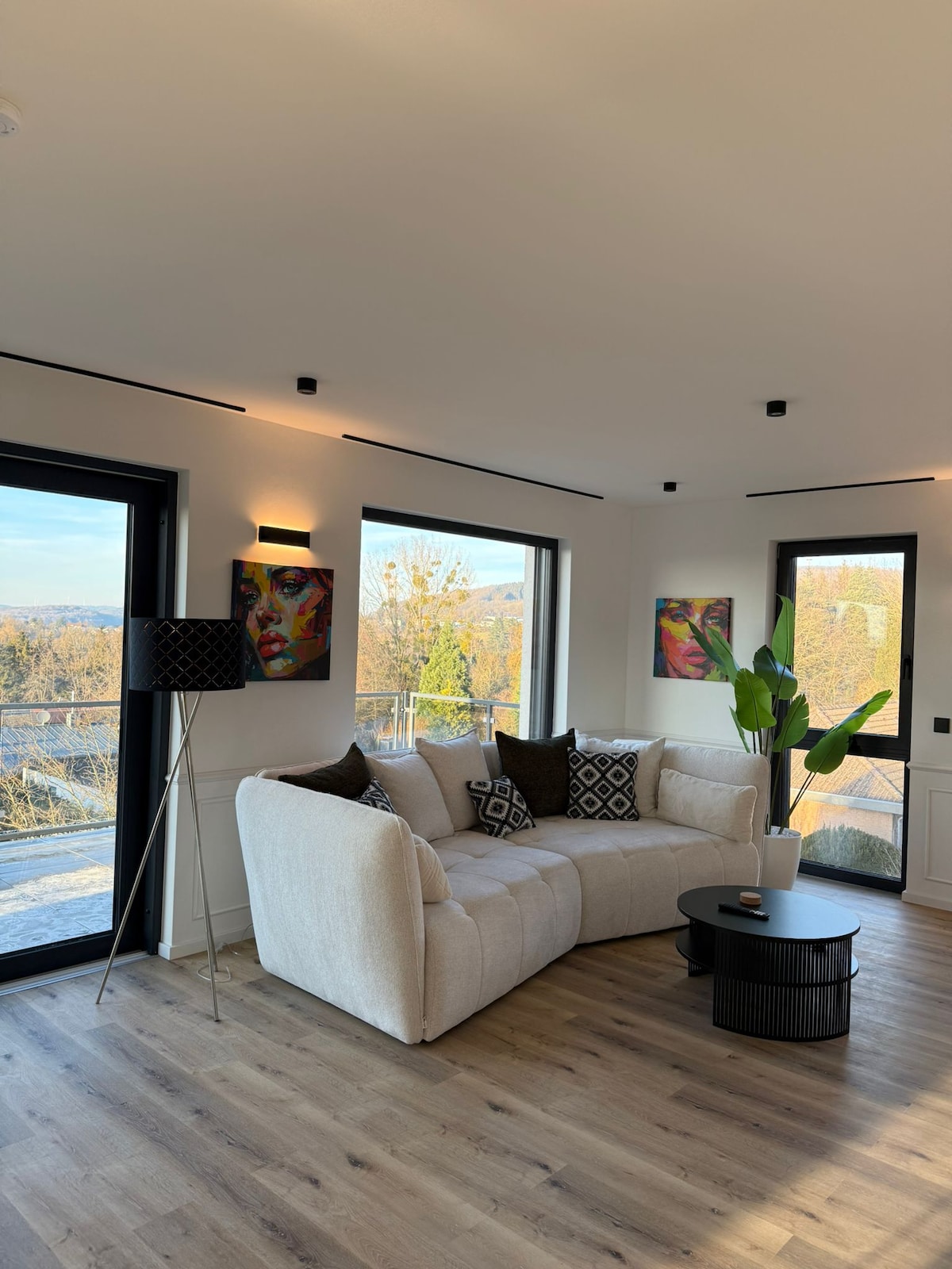 Willkommen in Ihrem luxuriösen Penthouse im obersten Stock eines Neubaus in St. Wendel! Auf 125 m² erwarten Sie stilvolle Möbel, zwei Schlafzimmer (Master mit Leselampen, Balkonzugang, jeweils mit Doppelbett), ein Bad, ein Gäste-WC sowie Whirlpool auf dem geräumigen Balkon. Für besten Komfort sorgen eine Nespresso-Vollautomatik, Aufzug, WLAN und kostenfreie Stellplätze. Haustiere sind ausdrücklich erwünscht! Genießen Sie den atemberaubenden Rundumblick über die Stadt!
