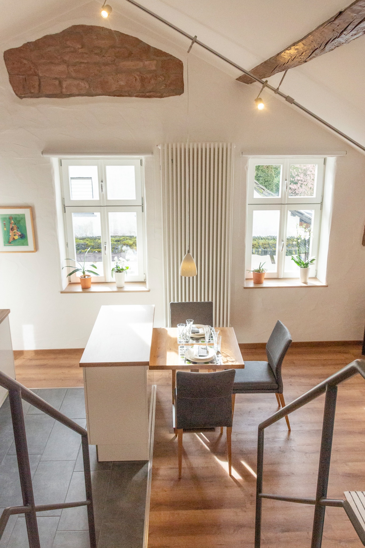 Die moderne Ferienwohnung „Zur Tenne“ befindet sich im liebevoll restaurierten Lothringer Bauernhaus in Erbringen, einem Ortsteil der Gemeinde Beckingen. Zentral gelegen, ein idealer Ausgangspunkt für Ausflüge im Dreiländereck Deutschland-Frankreich-Luxemburg. FeWo Zur Tenne 2**** Studio-Ferienwohnung im 2. Stock, ca. 47 m² groß, Schlafbereich mit Doppelbett und sep. Schlafzimmer mit Einzelbett, Wohn/Ess/Kochbereich, Dusche/WC, Sitzecke im Garten. Bis zu 3 Personen können sich hier wohlfühlen.