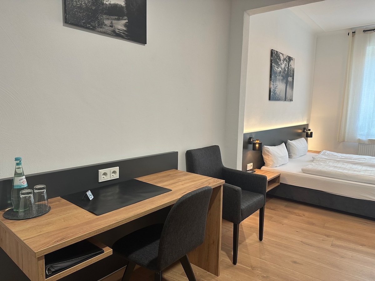Our rooms can be used as single or double rooms. They are 20 square meters in size, have high-quality box-spring beds and two pillows per person. All double rooms have a bathroom with shower/WC and a balcony, which invites you to linger with a glass of wine, especially in the evening. In the double rooms, a welcome coffee or tea is available for you to make yourself in the coffee kitchen. Breakfast is not included in the price, but can be booked separately for 15 Euros/person .