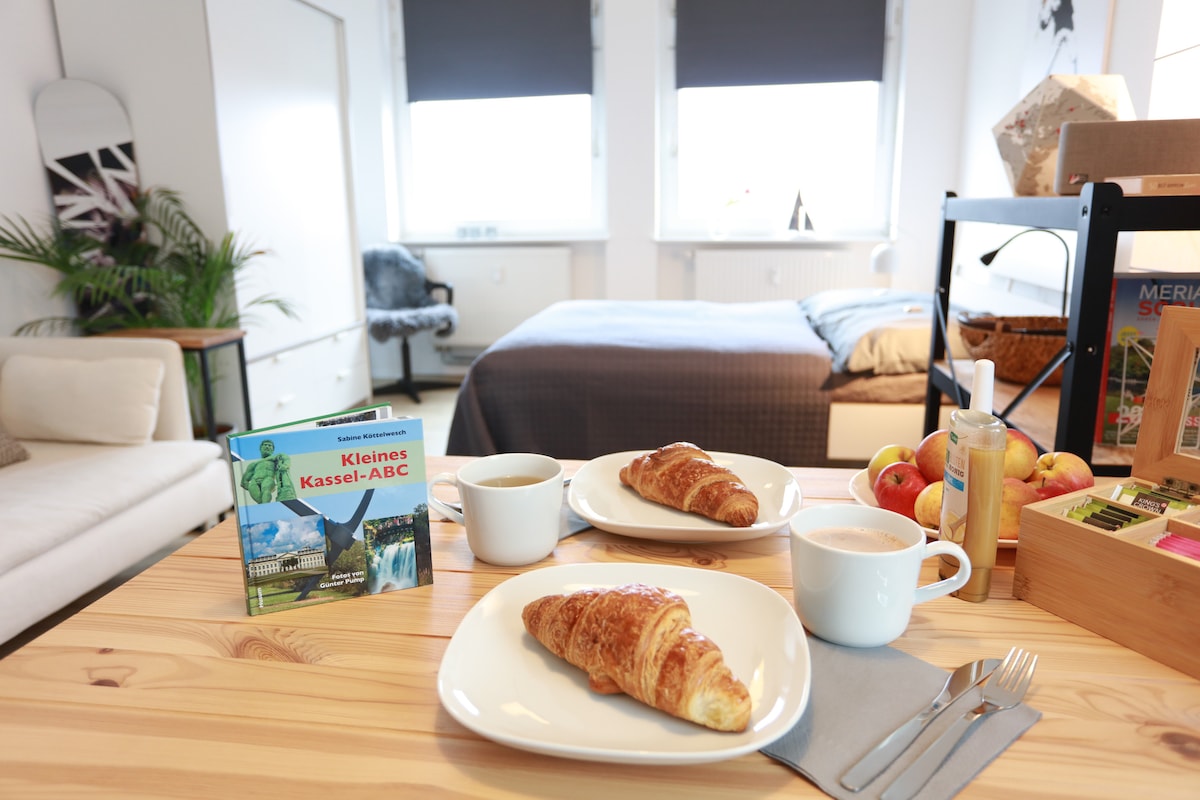 Stylisches Apartment im Vorderen Westen erwartet Sie. Im Altbau mit hohen Decken und tollem Raumgefühl, komplett renoviert und mit einem atemberaubendem Ausblick. Perfekt für einen Kurztrip oder auch eine ganze Woche. Liebevoll eingerichtet mit allem was man braucht! Inklusive Netflix! Alles fußläufig erreichbar: Tram, Bus, Restaurants, Cafés, Stadtzentrum. Kassels Partymeile ganz in der Nähe, aber weit genug weg um ruhig zu schlafen. Für zwei Personen ideal. 3 Stock, leider ohne Aufzug!!!