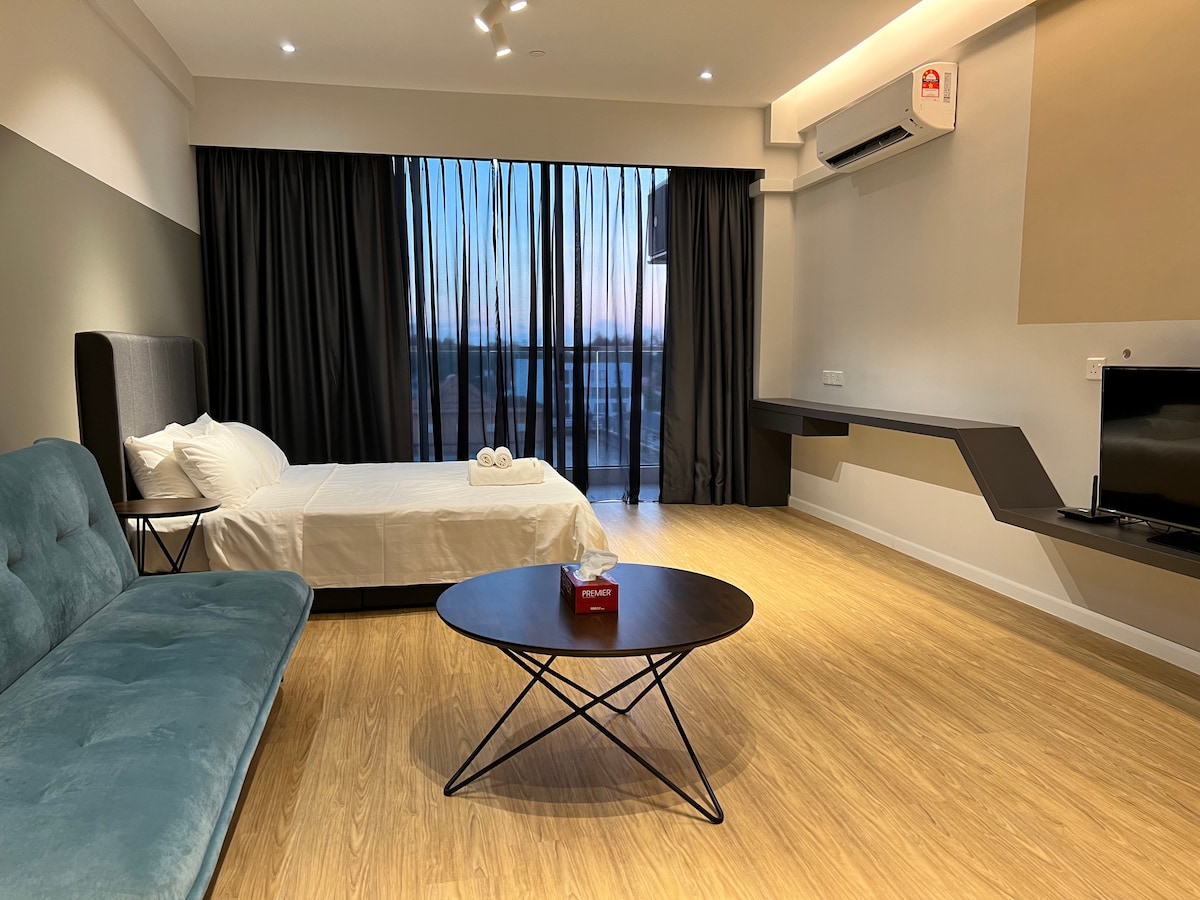 - 3KM to Airport - 2 KM to Tanjung Aru Beach - 5 minutes Grab (RM5) to Imago Mall/KK City - 24 hours Restaurant downstairs - Mini Freezer - TV with movies only - Towel and soap provided - Vacuum - Hair dryer/Water Heater -Gym - Provide car rental Saga RM 120 per day