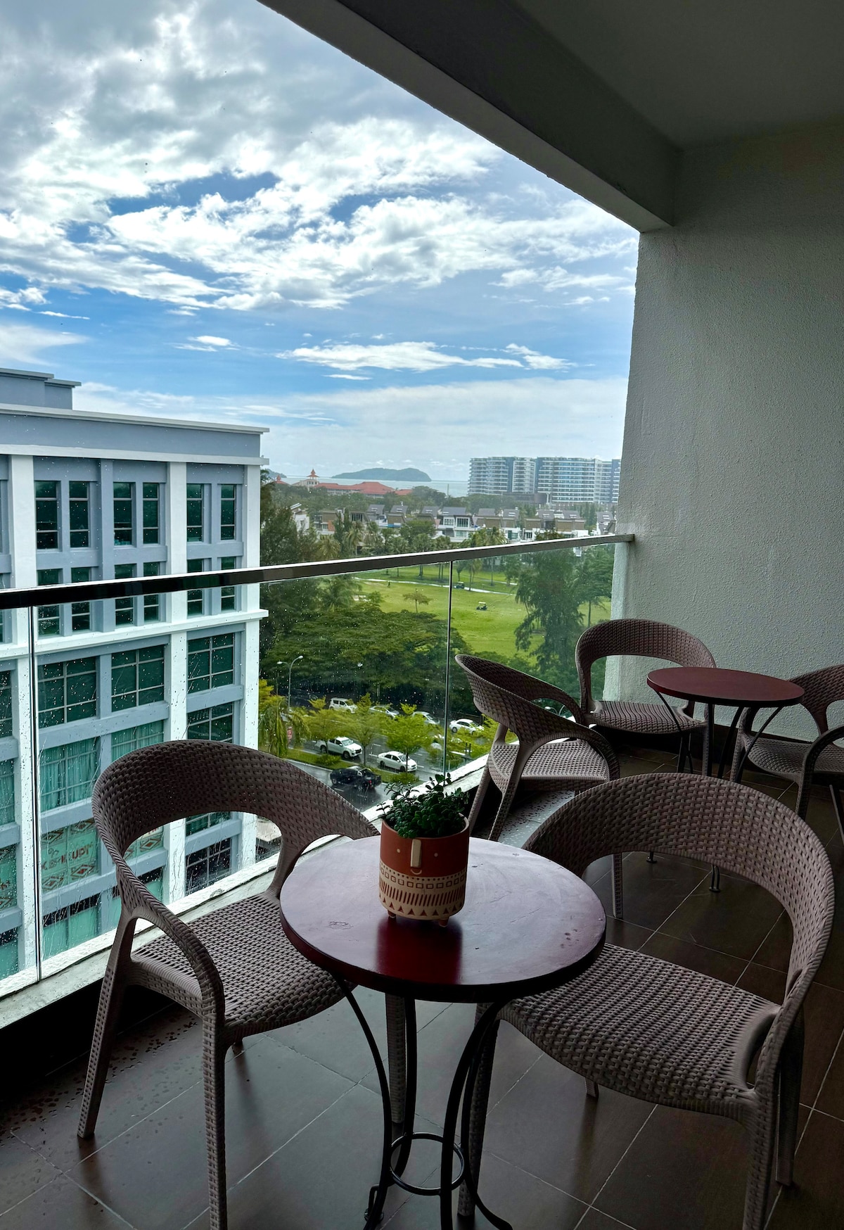 3房海景单位 :3BR Seaview Premier Suites 这是一间三房二卫一厅无敌海景的高楼层单位, 门外微风徐徐、落日余晖,眼前的蓝天白云,日落晚霞美的就像一幅画。美的不可思议. 开放式的厨房设计,配备厨具实用的家电让您在度假当中也能展现你的厨艺。 打开玻璃门,在宽阔的L型阳台(不是窗户哦)放松心情,感受凉爽的海洋平静的节奏和微风轻抚,营造出幸福的沉默,氛围感满满! 特别选用质朴清新的原木风材质,搭配绿化植物,柔和灯光色调及挂画作为点缀,让人一踏入屋内就能感到身心灵放松,心情愉悦! 楼层 :10楼 坪数 :1,303sf 楼景 :日落+海景 (L-型阳台) 床型 :主卧房 ( x 1 QUEEN大床, 次卧 (x 1 QUEEN大床 + x 1 单人床 ) , 次卧 ( x1 QUEEN大床) 入住人数 :七人 (含儿童)