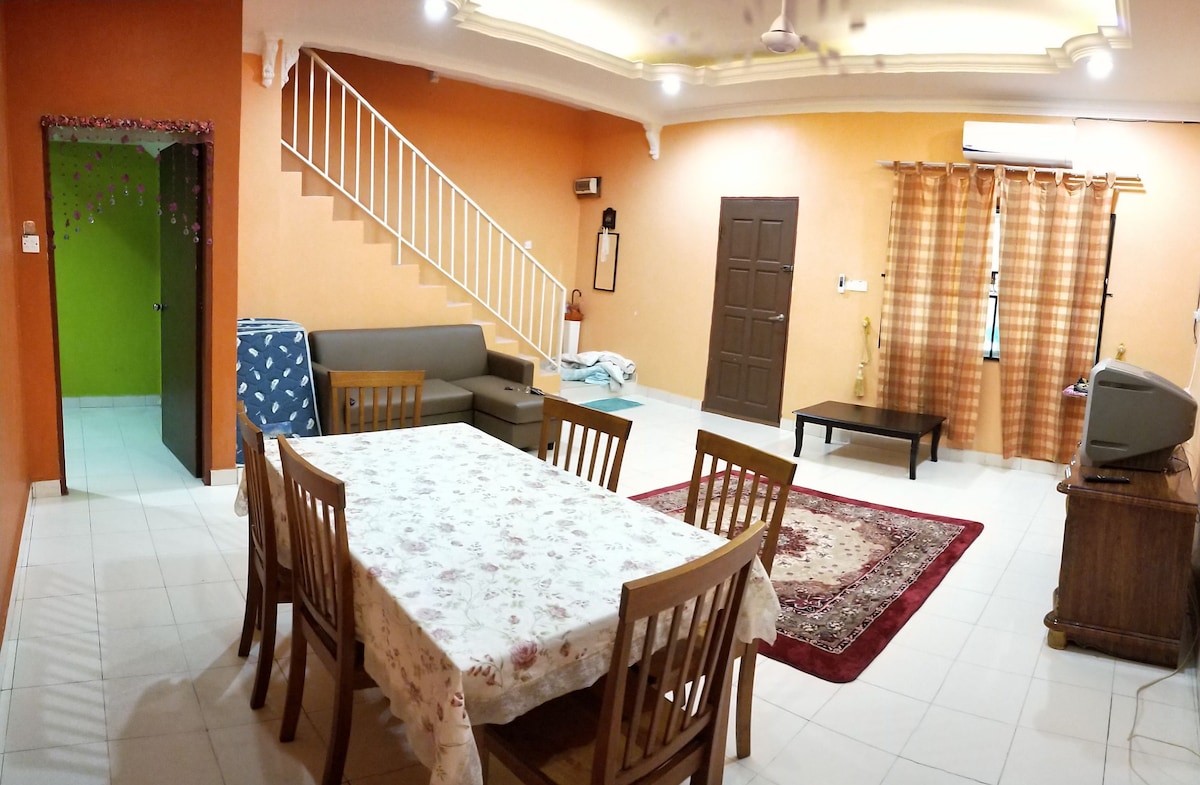 This double storey homestay welcomes you with its unique colour combination of design as well as wooden furniture which add a touch of coziness to your stay. There are total of 4 bedrooms, with 3 rooms upstairs and 1 downstairs. All rooms upstairs are attached with bathrooms and one downstairs next to the guest room.